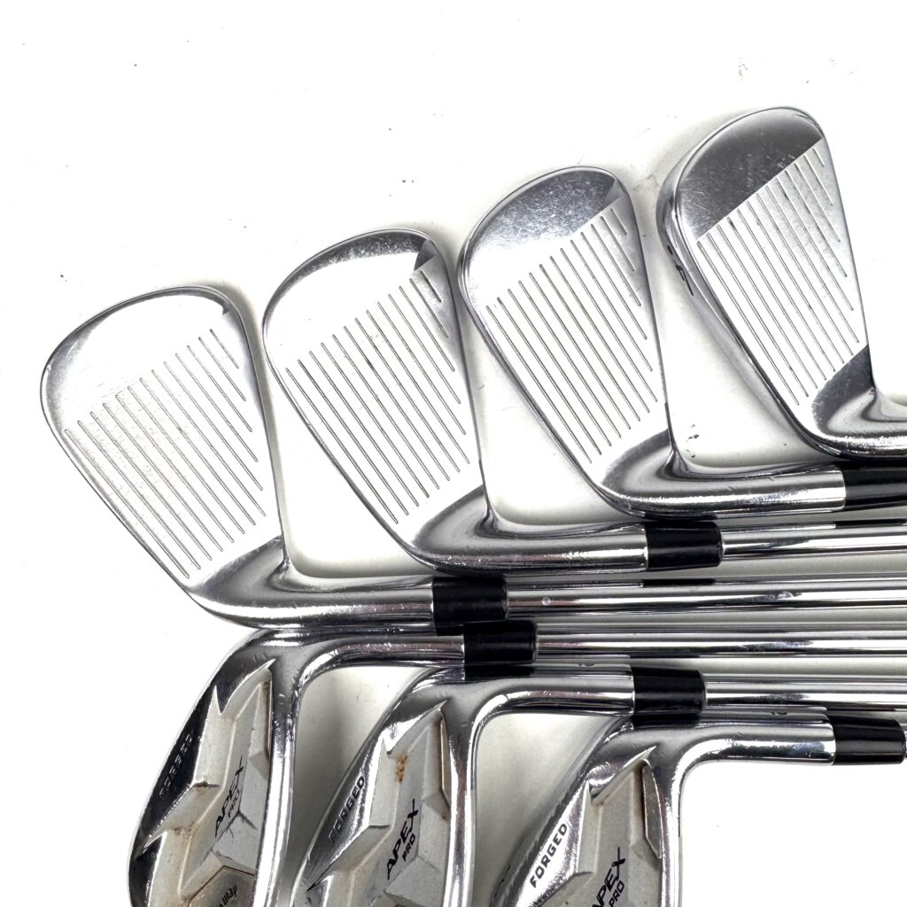 The Apex Pro 19 Irons utilize Callaway’s “VFT” (Variable Face Thickness) technology to enhance ball speed and distance across the face, even on off-center hits. The “Tungsten Weighting” system strategically positions weight in the clubhead to increase stability and forgiveness, while the compact, tour-inspired design with a thin topline and minimal offset appeals to players who prefer a classic look.