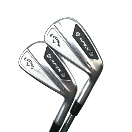 The Apex Pro 2024 Irons incorporate Callaway’s latest “A.I.-Designed Flash Face Cup” technology, which optimizes face thickness to enhance ball speed and distance across the entire face, even on off-center hits. The irons also use “Tungsten Weighting” to strategically position weight in the clubhead, improving stability and increasing the moment of inertia (MOI) for enhanced forgiveness.