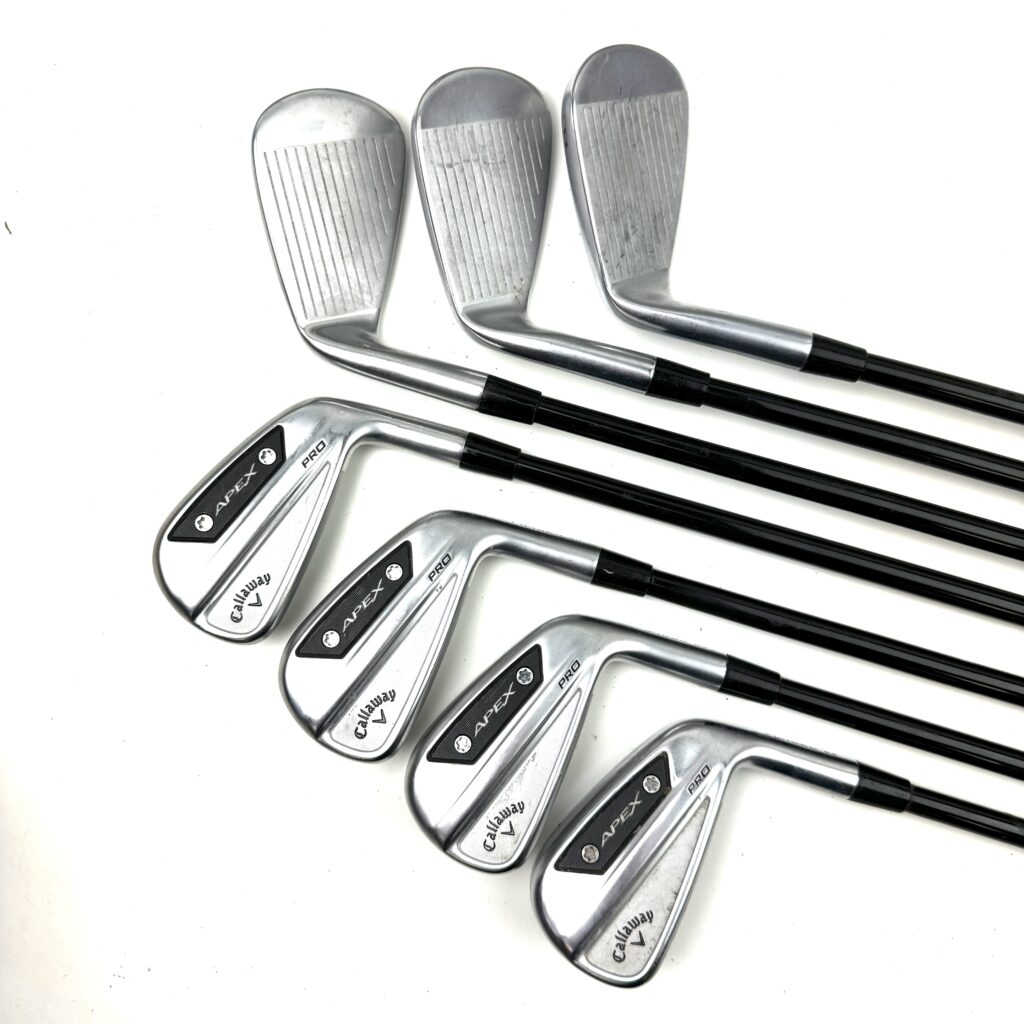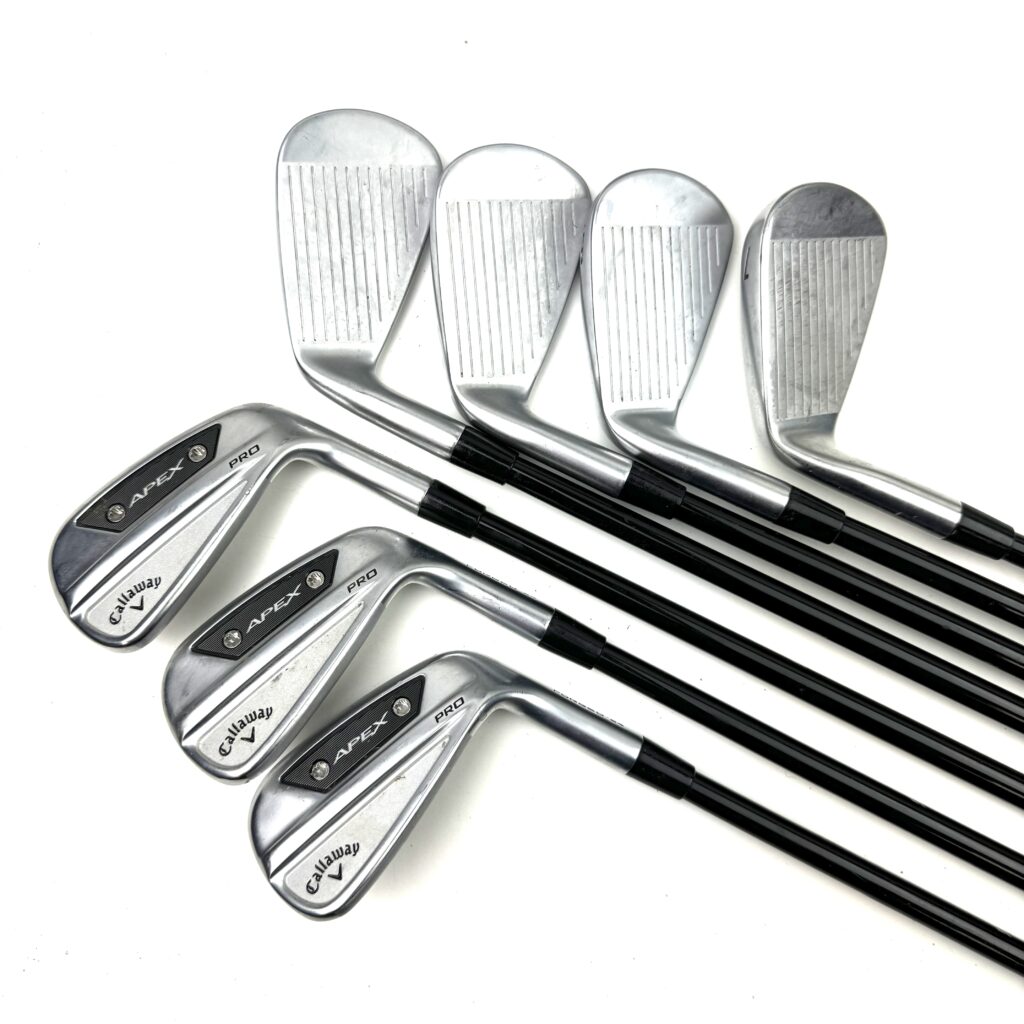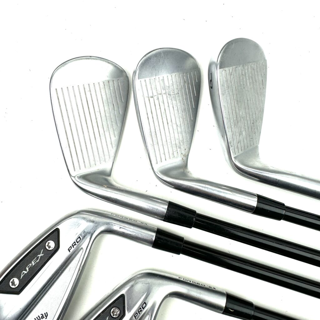 The Apex Pro 2024 Irons incorporate Callaway’s latest “A.I.-Designed Flash Face Cup” technology, which optimizes face thickness to enhance ball speed and distance across the entire face, even on off-center hits. The irons also use “Tungsten Weighting” to strategically position weight in the clubhead, improving stability and increasing the moment of inertia (MOI) for enhanced forgiveness.