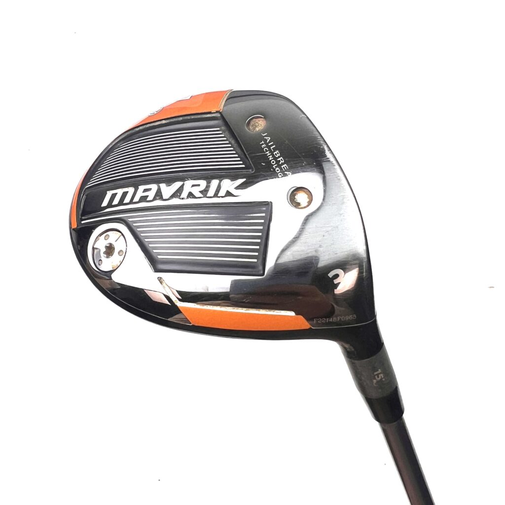 The Callaway Mavrik fairway wood is built for confidence with a large and expansive hitting area. Featuring a single fixed weight in the sole to pull the CG low and back in the head for high launch and flat trajectory.