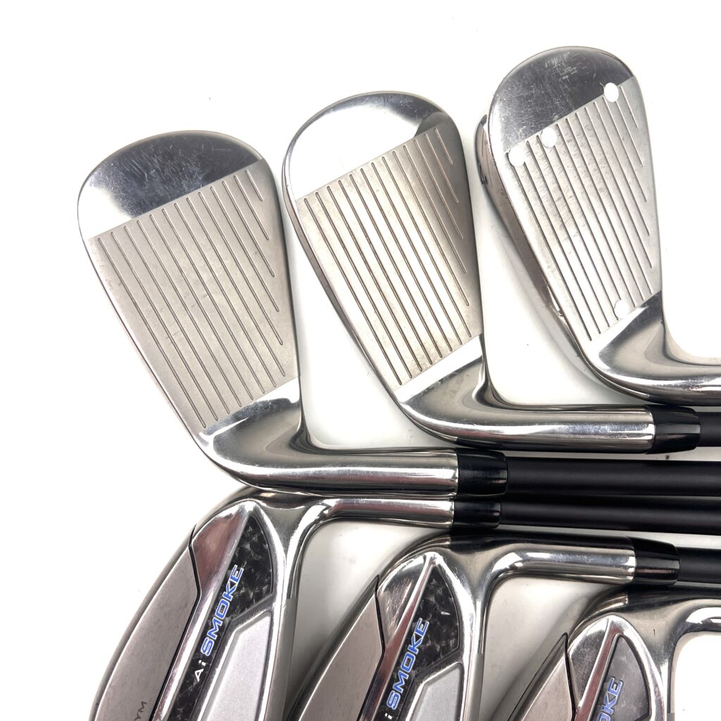 The Paradym AI Smoke Irons incorporate “Tungsten Weighting,” which strategically positions weight in the clubhead to improve stability and increase the Moment of Inertia (MOI). This design enhances forgiveness and allows for higher ball launches with more control. The irons also feature a distinctive smoke finish, adding a stylish and contemporary look to the performance-driven design.