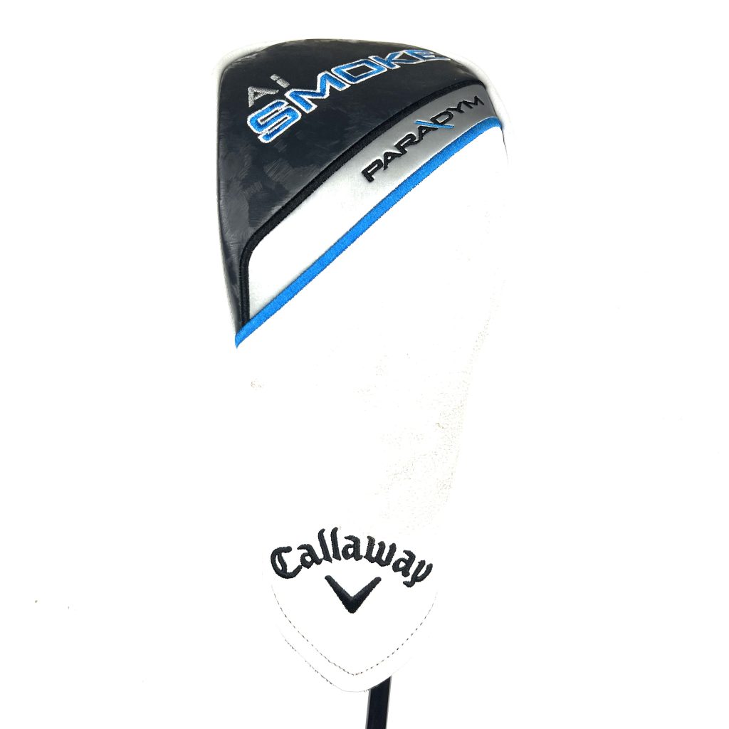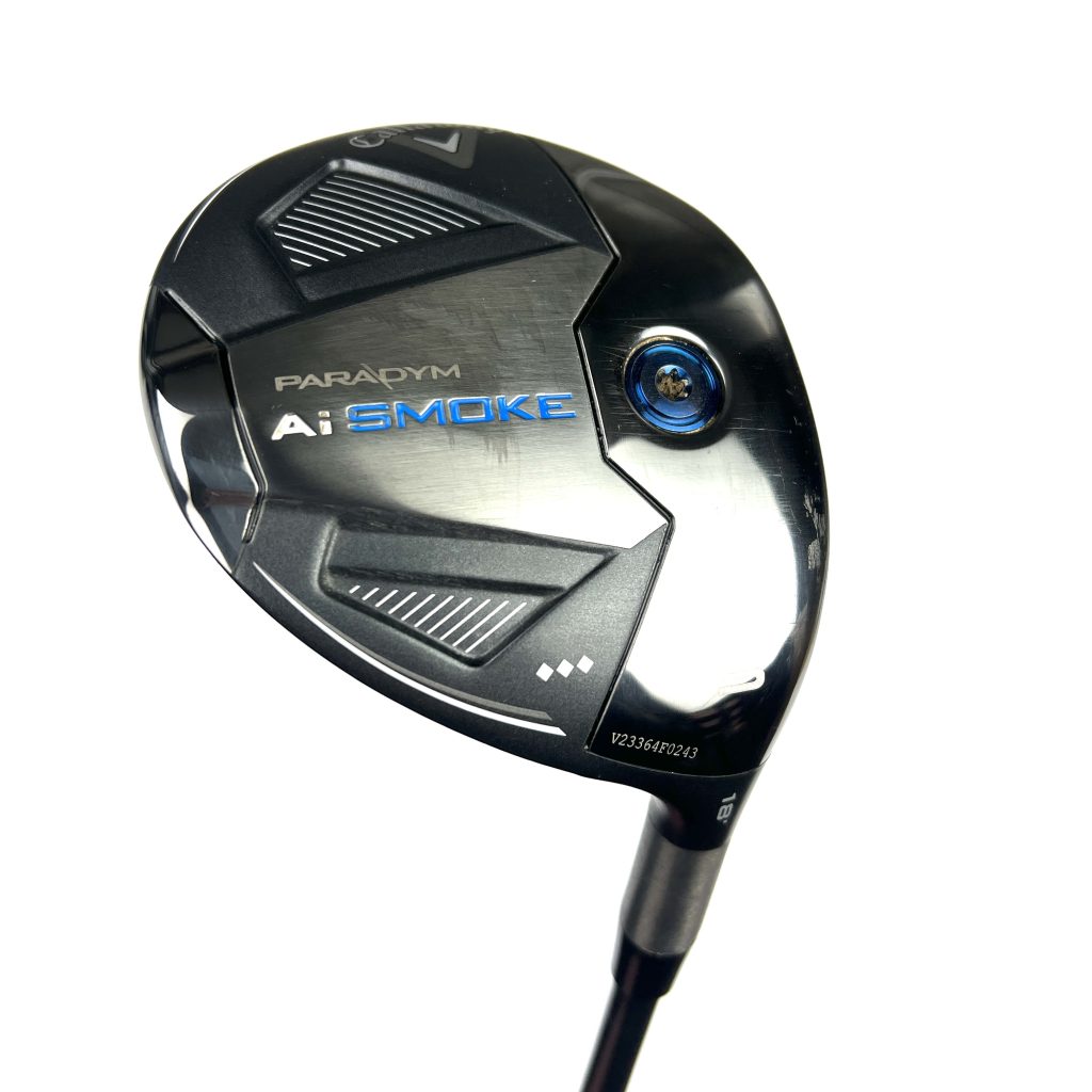 The Callaway Paradym AI Smoke Fairway Wood is a 2024 release designed to offer exceptional performance through advanced technology. This fairway wood utilizes the new AI Smart Face technology, replacing the previous Jailbreak Technology. The AI Smart Face provides multiple sweet spots across the face, ensuring maximum forgiveness and ball speed even on off-center hits. One of the key features of the Paradym AI Smoke is its refined carbon chassis, which redistributes 24 grams of weight throughout the clubhead. This includes 12 grams positioned low-forward to enhance launch and spin, and 12 grams at the rear for increased forgiveness. The incorporation of a tungsten speed cartridge helps position the center of gravity (CG) low and forward, promoting optimal launch and spin for maximum distance. Triple Diamond: Compact shape for better players with faster swing speeds, providing a penetrating ball flight with low spin.