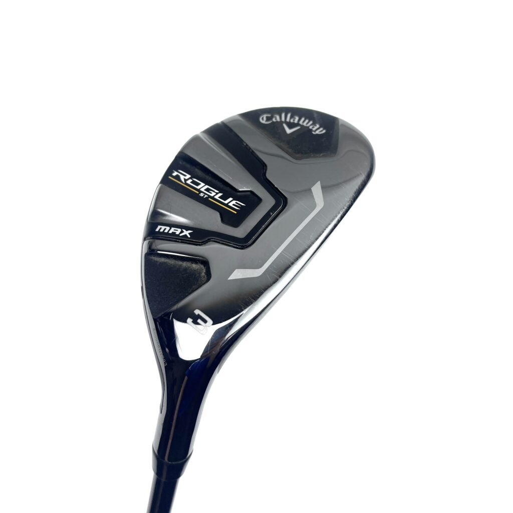 Callaway Rogue ST Max Hybrid. The new system has been designed by artificial intelligence to promote speed and stability. Two frames are pushed to the perimeter of the club, providing stiffness at these points while allowing the face to flex for high ball speeds.