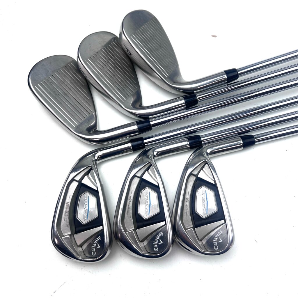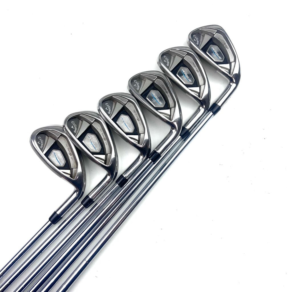 The Callaway Rogue X Irons are engineered to provide exceptional distance, forgiveness, and ease of play, making them a great choice for golfers who want to improve their performance with a reliable, user-friendly iron set. These irons feature a large, cavity-backed clubhead with a wide sole, which helps lower the center of gravity (CG) and increase the Moment of Inertia (MOI). This design promotes higher ball launches and enhances forgiveness on off-center hits, ensuring greater consistency and confidence.