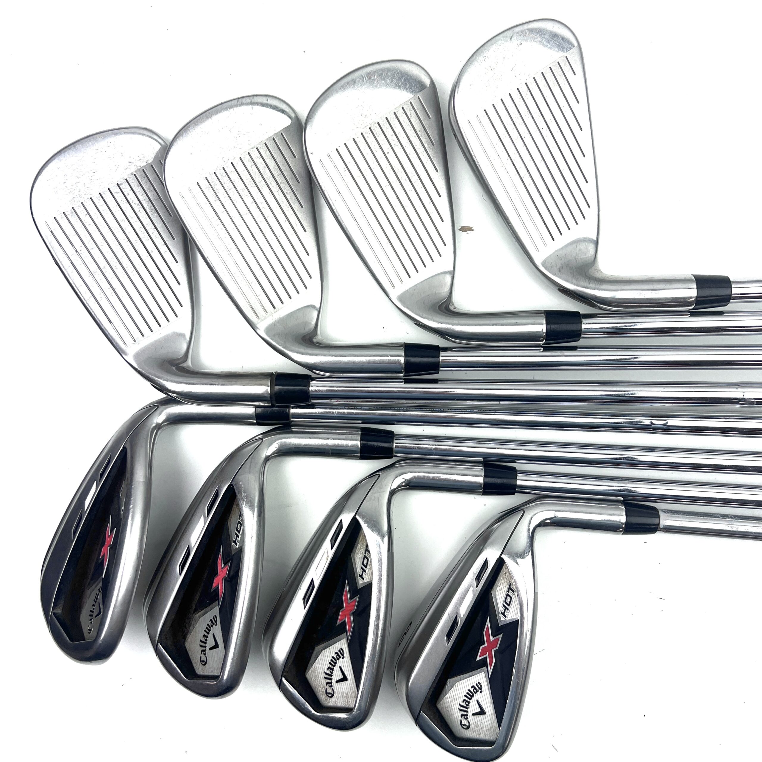 The X Hot Irons incorporate Callaway’s advanced technologies, including the **Speed Frame Face Technology**, which optimizes face thickness and boosts ball speed across the entire clubface. This technology helps to maximize distance even on mis-hits. The wide sole design further enhances forgiveness by improving turf interaction, reducing the chances of fat or thin shots, and ensuring cleaner contact from various lies.