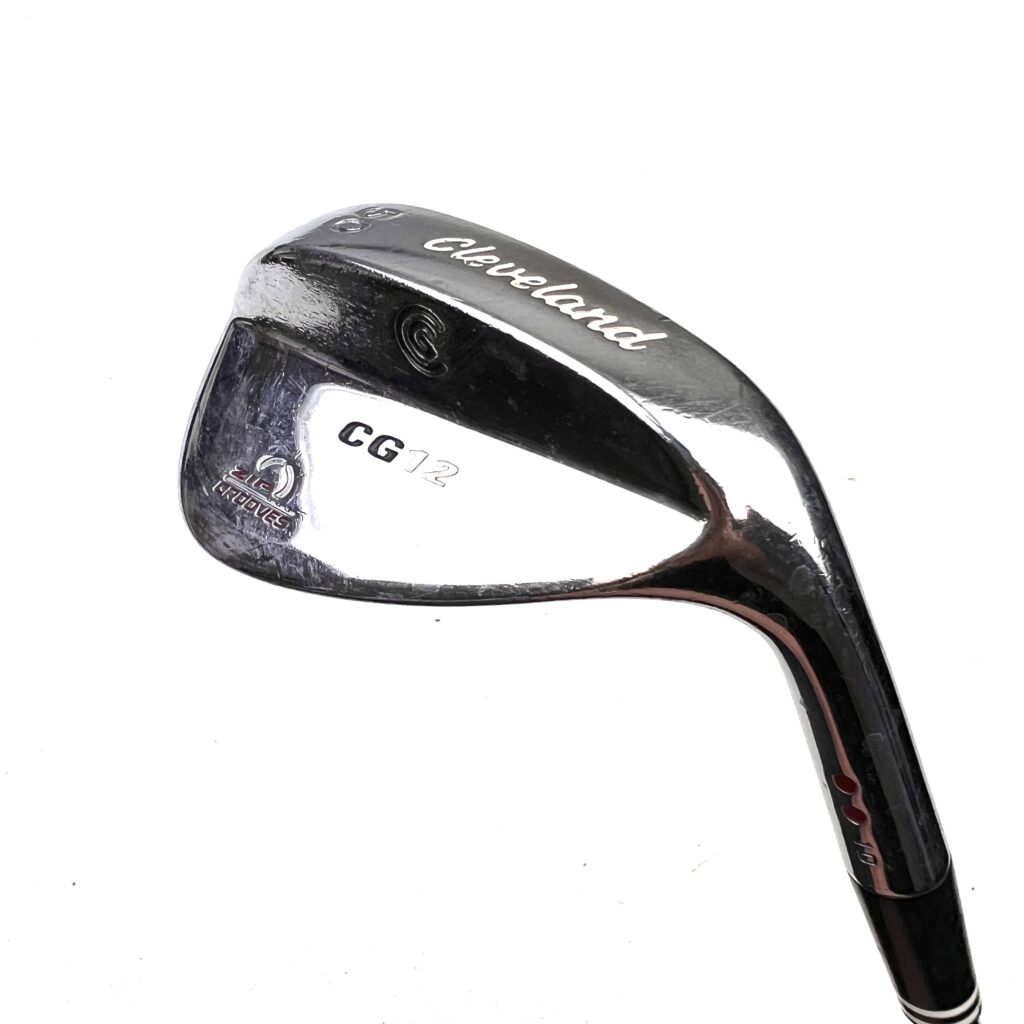 The Cleveland CG12 wedge features laser-milled Zip Grooves for maximum spin, a versatile sole design for performance from various lies, and an 8620 carbon steel construction for a soft feel. Its traditional shape provides confidence at address. Ideal for golfers seeking high spin, versatility, and a soft feel in their short game.