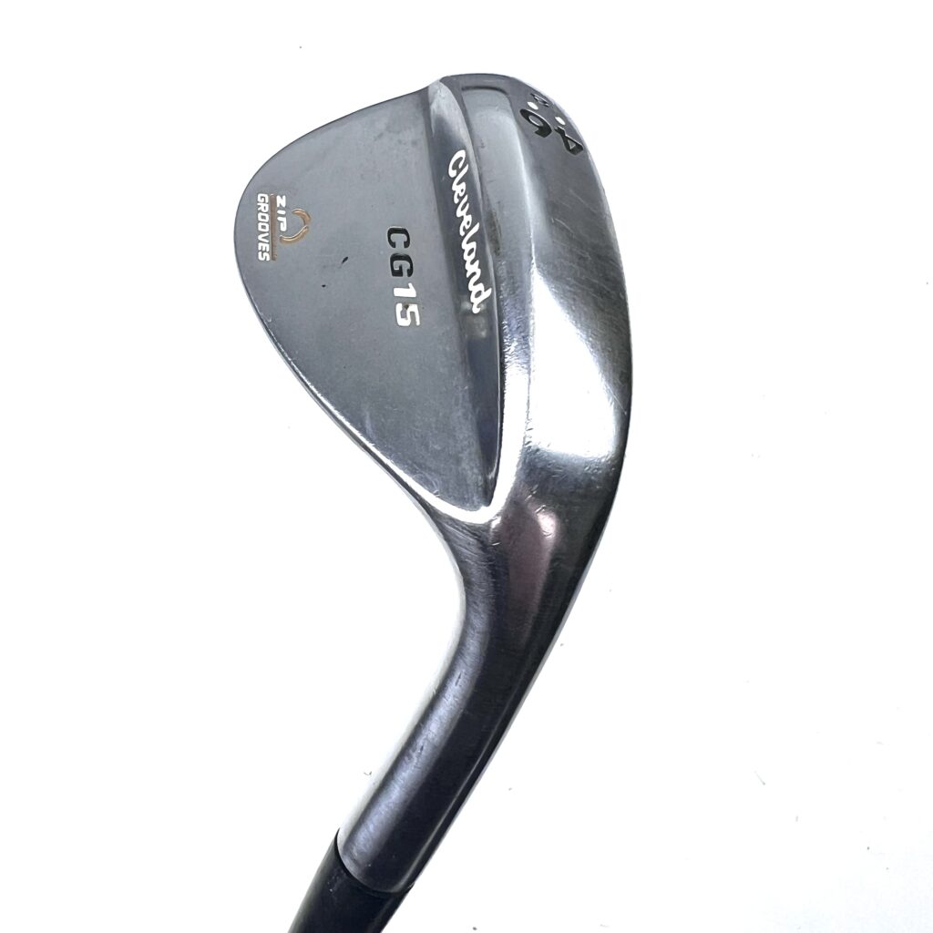 The CG15 wedge by Cleveland Golf is a premium golf club designed for precision and control in short-game situations. It features a classic teardrop shape that enhances performance for players of all skill levels. The club is known for its Laser Milled face technology, which creates precise surface roughness for increased spin and control on approach shots. The Zip Grooves technology also plays a crucial role in maximizing spin by channeling dirt and debris away from the ball contact area.