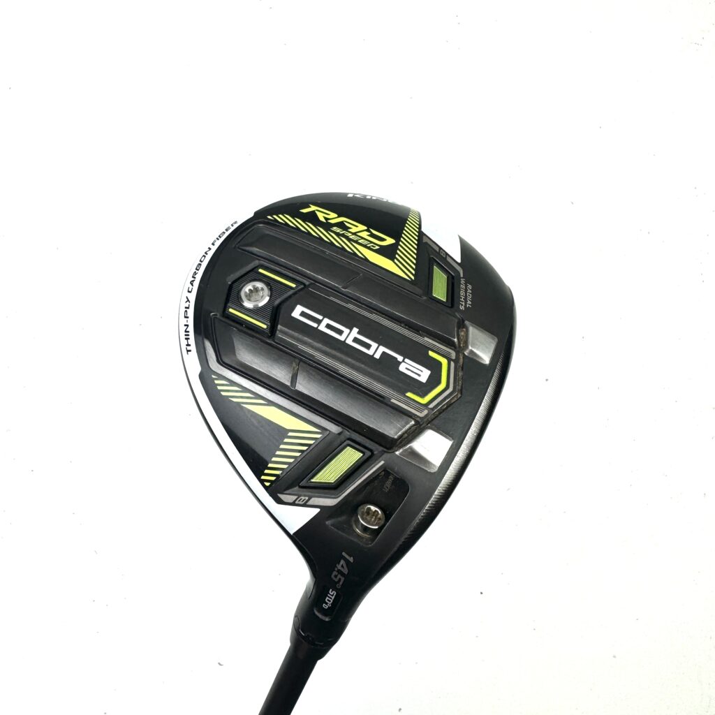 Cobra Golf has been a stalwart in the realm of metal woods for decades, consistently pushing the boundaries of innovation. Recent advancements, such as the CNC Milled Infinity Face and split sole rails, have elevated Cobra metal woods to unprecedented levels. In 2021, Cobra introduced the RAD Speed fairways, showcasing Radial Weighting to further optimize performance. The standard RAD Speed fairway wood is tailored to accommodate a broad spectrum of golfers, incorporating front-biased Radial Weighting meticulously designed to provide low spin while preserving high launch and forgiveness.