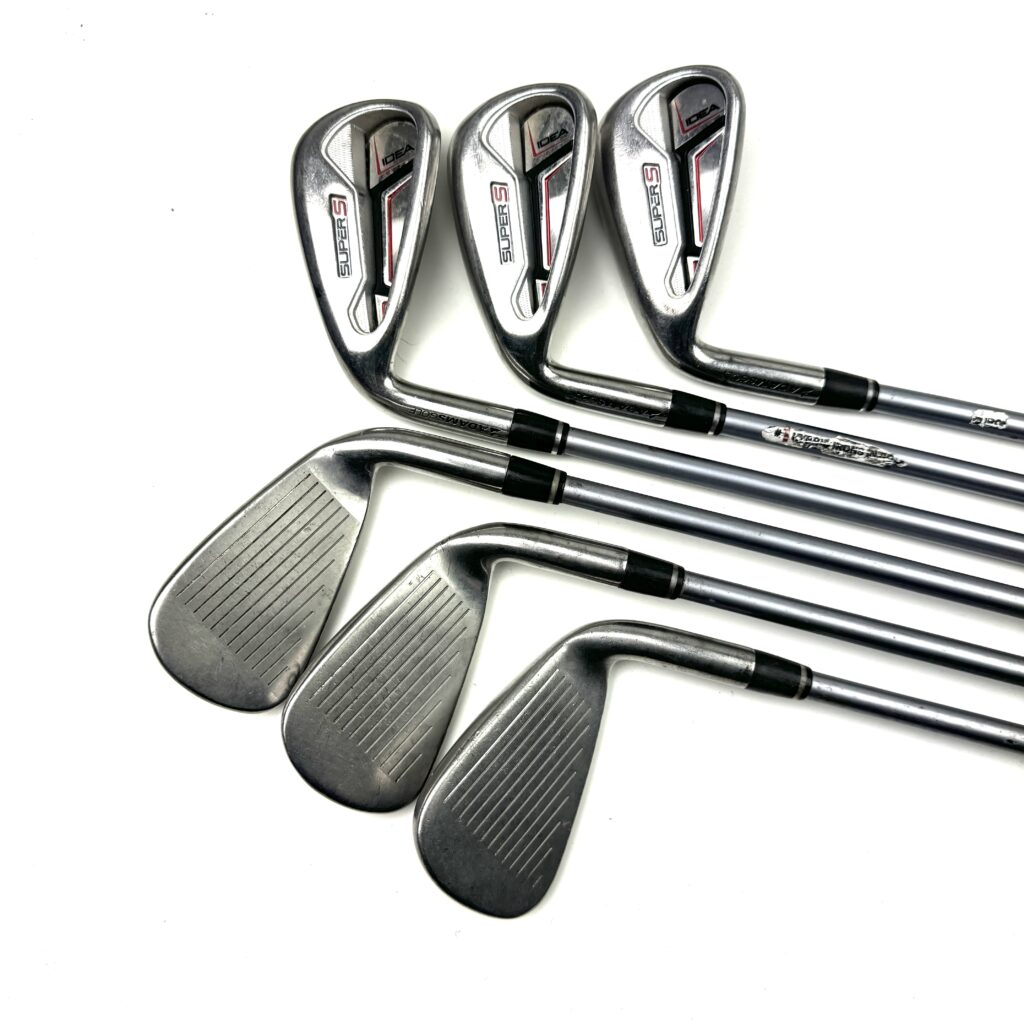Adams Super S irons (released ~2013) are game-improvement clubs featuring a half-hollow construction, 20% thinner faces for higher ball speeds, and low center of gravity for easy, high launches. Designed for maximum forgiveness and distance.