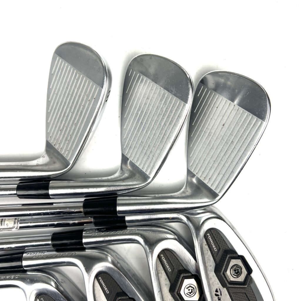 The 2011 Tour Preferred MC irons are forged from soft carbon steel, which provides a soft, responsive feel at impact, highly valued by better players. The irons feature a compact head with a thin topline and minimal offset, offering a classic, clean look at address that appeals to golfers who prefer a traditional aesthetic. TaylorMade also incorporated their “Precision Weighting Port” in these irons, which ensures consistent swing weights throughout the set and helps optimize the center of gravity for better launch conditions.