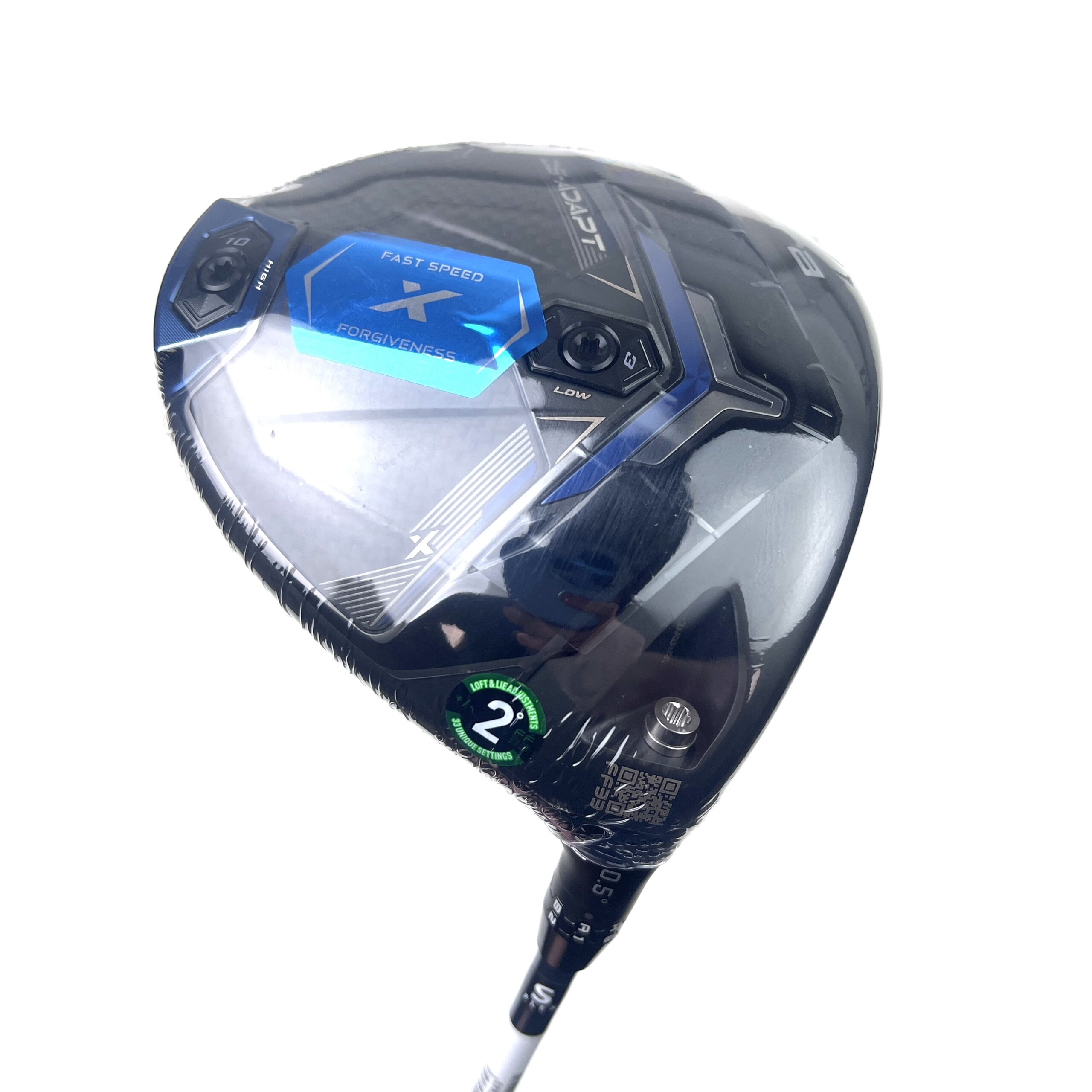 The Cobra DS-Adapt X driver is a customizable golf club for players seeking fast speeds, lower spin, and added forgiveness, featuring FutureFit33 technology for 33 loft/lie settings, an adjustable weighting system (front/back sole ports) for fine-tuning spin, advanced aerodynamics for speed, and a large H.O.T. Face for big energy transfer, all in a sleek, traditional shape with a stable feel for a powerful, versatile performance off the tee.
