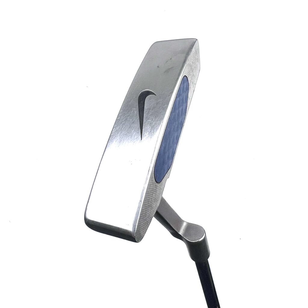 The Nike Blue Chip putter, released in the early 2000s, was an affordable, mid-range golf putter with a traditional blade design. It featured balanced weighting and a soft face insert for improved stability and feel, catering to golfers who preferred a classic look and reliable performance. Since Nike exited the golf equipment market in 2016, the Blue Chip putter is now a vintage or collectible item.