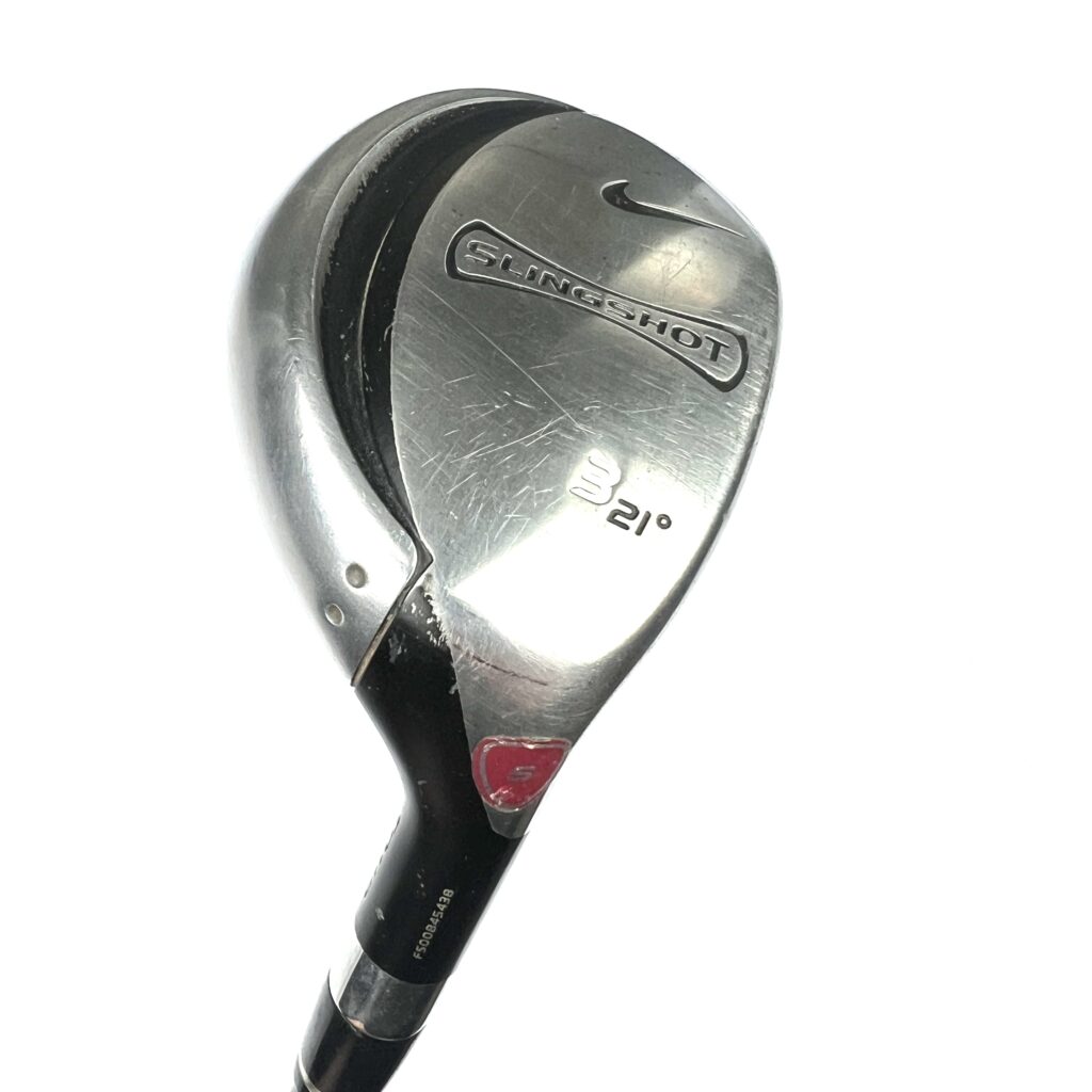 Nike Slingshot Hybrid. The low and deep centre of gravity and premium materials used to make these hybrids translate into increased energy transfer to the ball, a higher launch angle, easier to square clubhead and enhanced stability for high, long and accurate shots. Lightweight carbon crown, low-slung Slingback and thick sole design drive 70% of the clubhead mass below the equator of a golf ball.