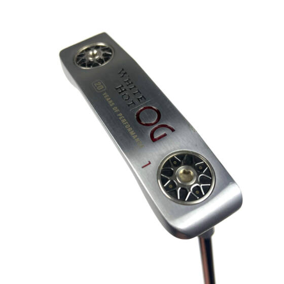 White Hot OG #1 is a modern blade design with a simple alignment aid featuring moderate toe-hang to suit golfers with a slight arc rotation in their putting stroke.