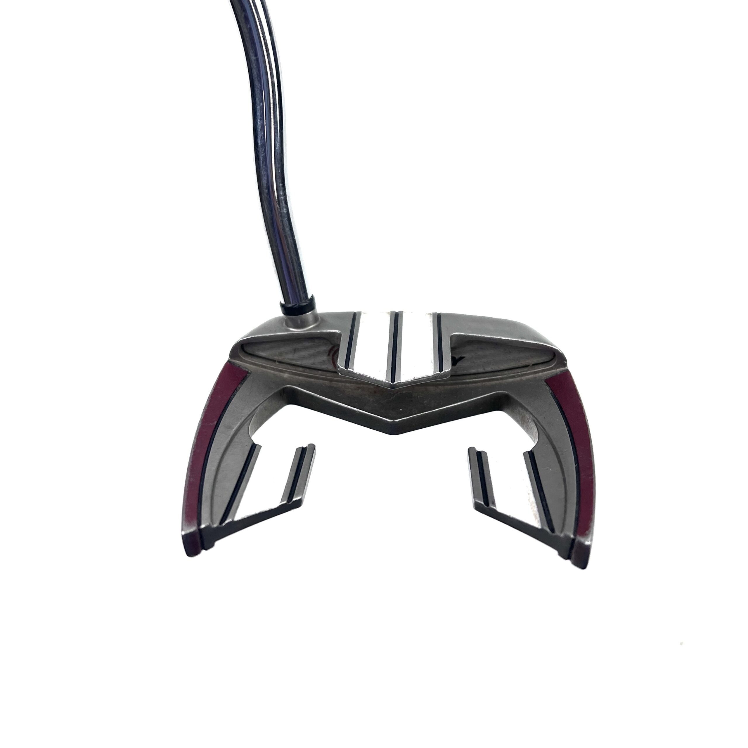 The Odyssey White Hot XG line of putters feature a multi-layer insert designed for better feedback, feel and distance control. The insert is lighter than the steel the putter is constructed from and therefore makes the putter more stable. The center of the insert has a textured pattern to enhance and highlight the sweet spot.