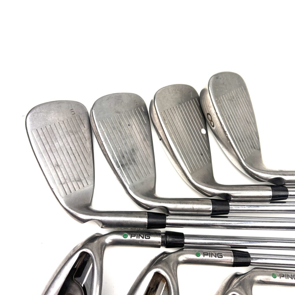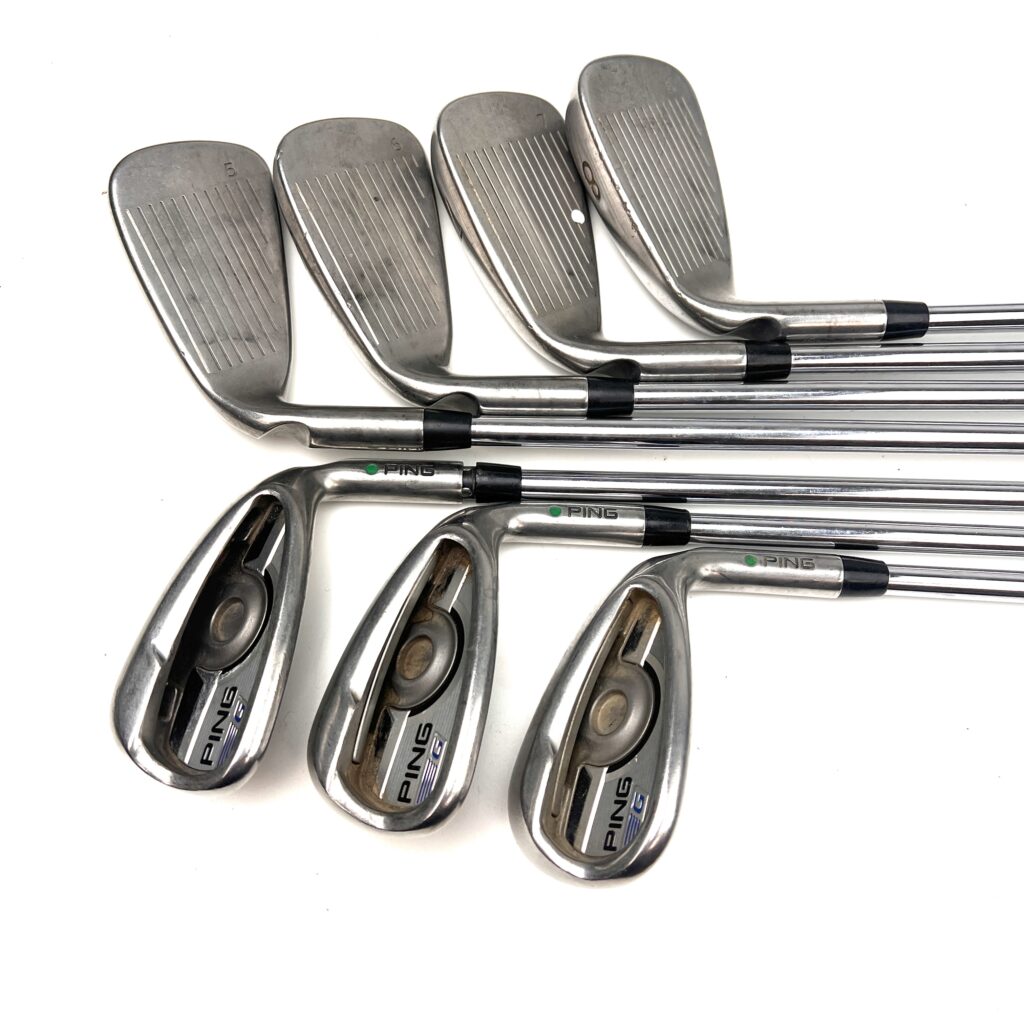 The Ping G Series irons are designed to offer a combination of forgiveness, distance, and playability, making them a popular choice for golfers seeking game-improvement features. Constructed from stainless steel, these irons feature a large, cavity-back design that enhances the moment of inertia (MOI), providing exceptional forgiveness on off-center hits and consistent performance across the clubface.