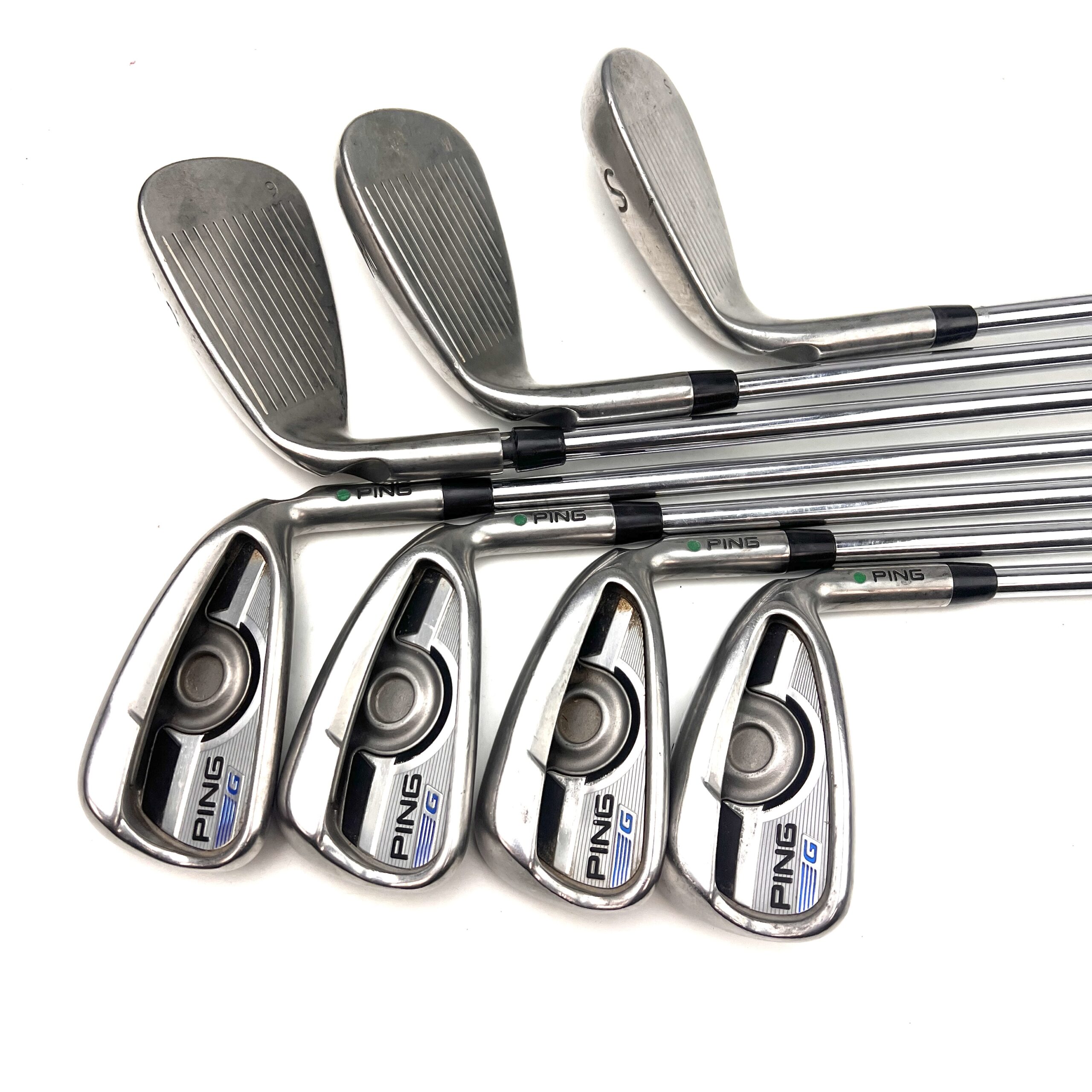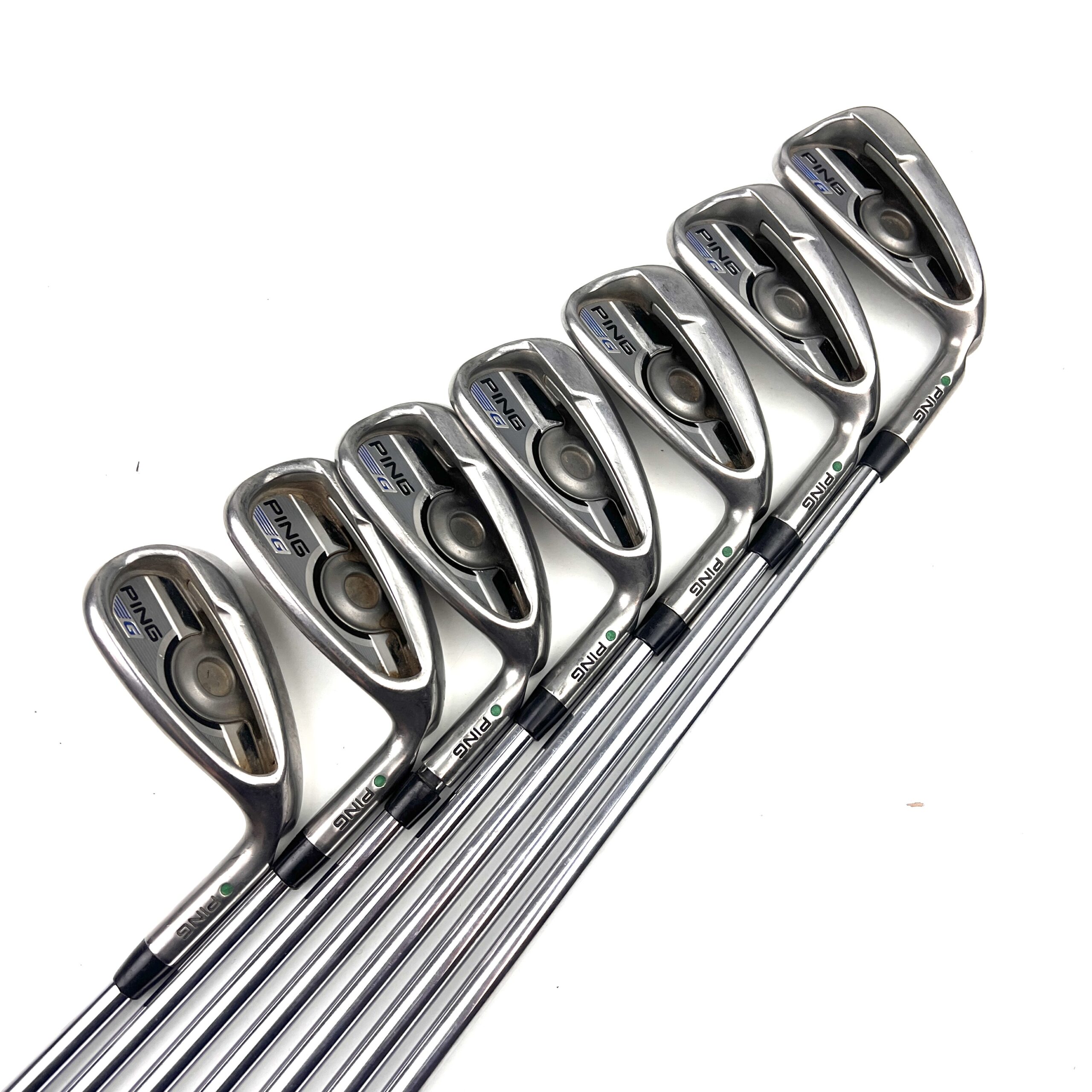 The Ping G Series irons are designed to offer a combination of forgiveness, distance, and playability, making them a popular choice for golfers seeking game-improvement features. Constructed from stainless steel, these irons feature a large, cavity-back design that enhances the moment of inertia (MOI), providing exceptional forgiveness on off-center hits and consistent performance across the clubface.