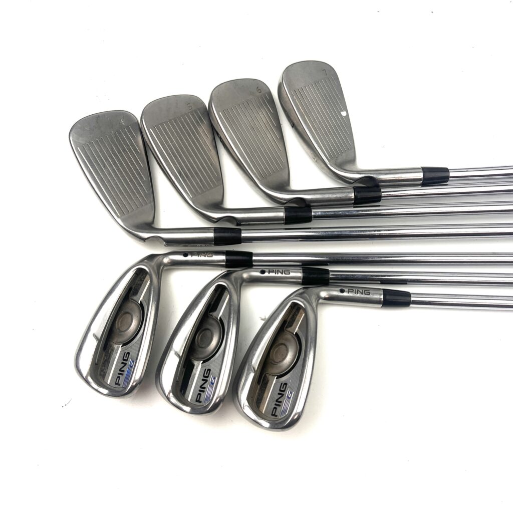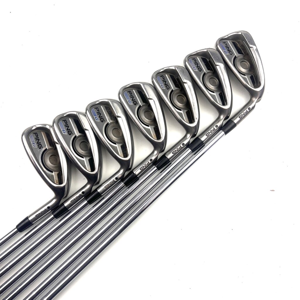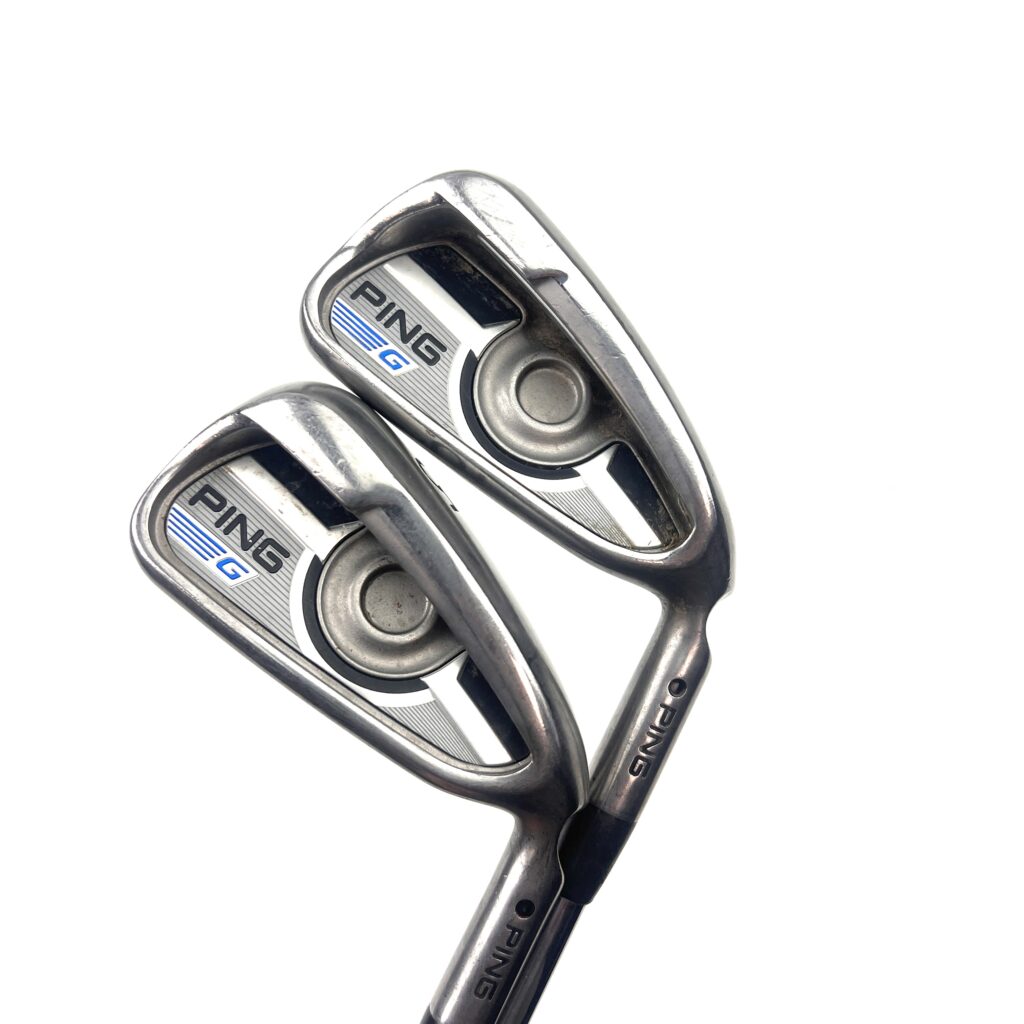 The Ping G Series irons are designed to offer a combination of forgiveness, distance, and playability, making them a popular choice for golfers seeking game-improvement features. Constructed from stainless steel, these irons feature a large, cavity-back design that enhances the moment of inertia (MOI), providing exceptional forgiveness on off-center hits and consistent performance across the clubface.