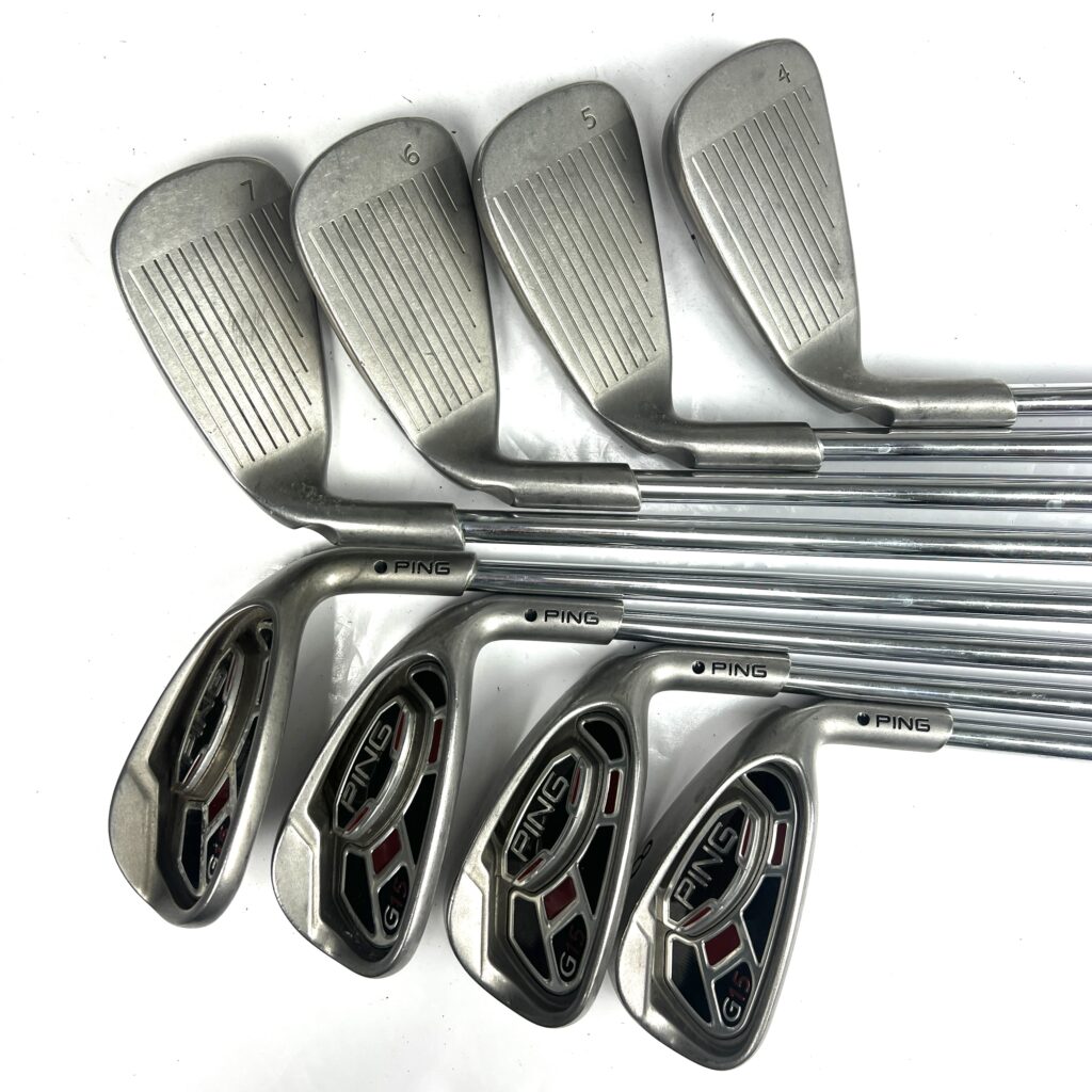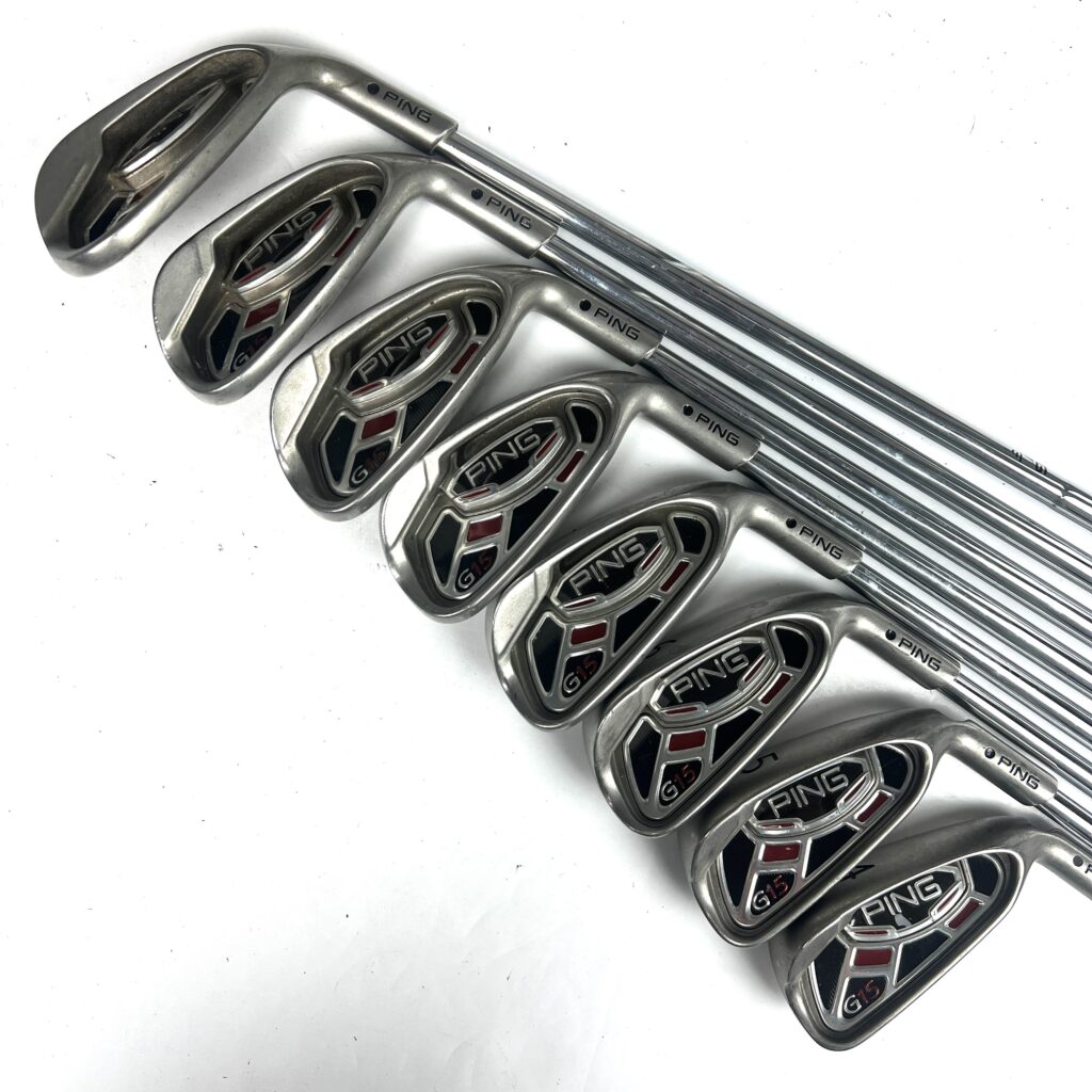 The Ping G15 irons are designed to provide a blend of forgiveness, distance, and playability, making them a popular choice for golfers seeking game-improvement features. Constructed from stainless steel, these irons feature a large, cavity-back design that enhances the moment of inertia (MOI), offering excellent forgiveness on off-center hits and consistent performance across the clubface.