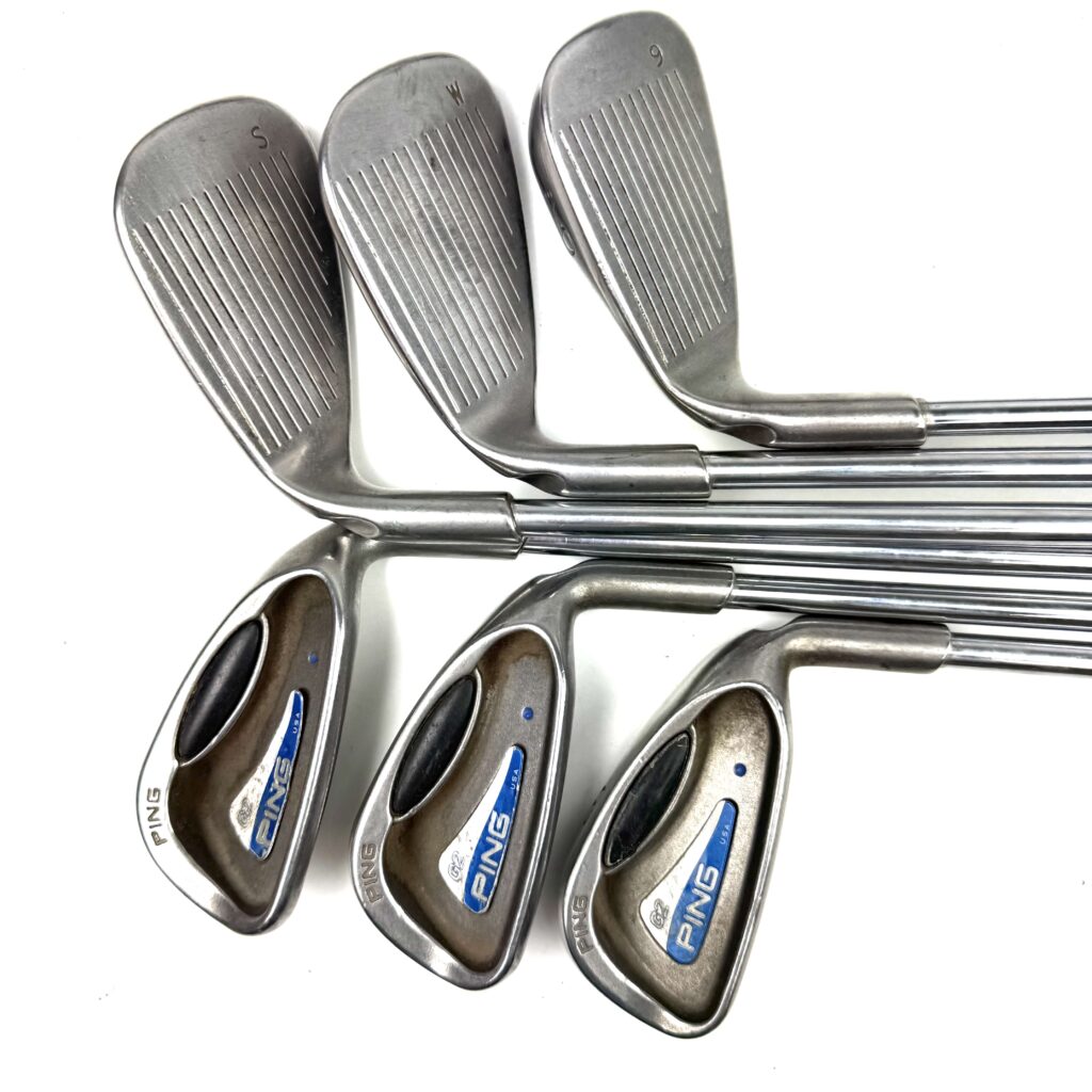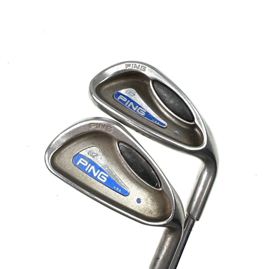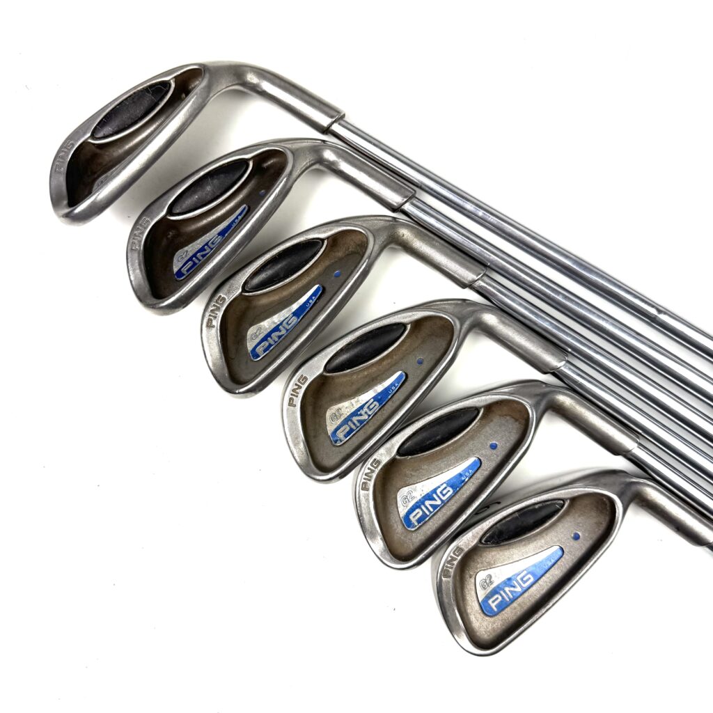 The Ping G2 irons are designed to provide a combination of forgiveness, distance, and a user-friendly profile, making them a solid choice for golfers seeking game-improvement features. Constructed from stainless steel, these irons feature a large, cavity-back design that increases the moment of inertia (MOI), offering enhanced forgiveness on off-center hits and more consistent performance across the clubface.