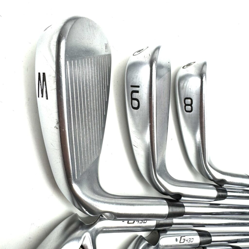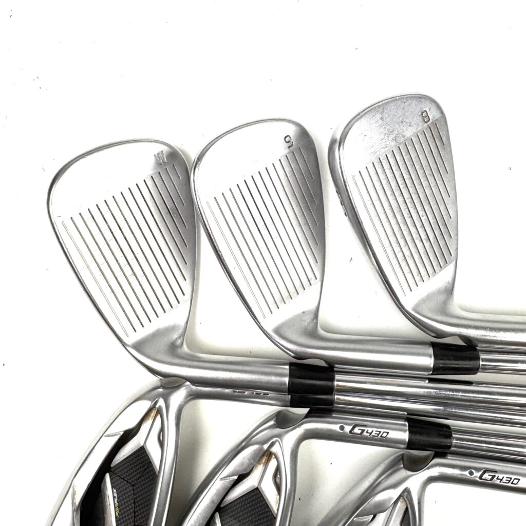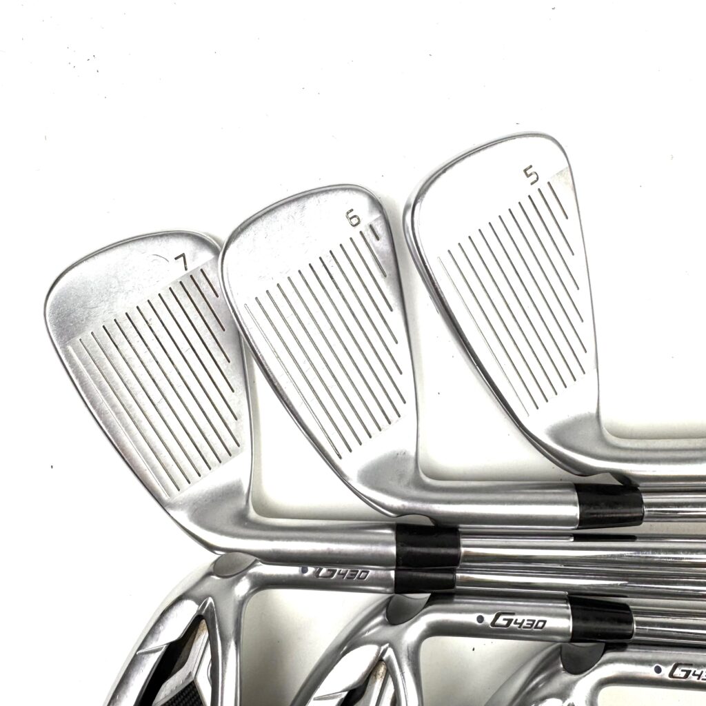 A key feature of the G430 irons is the “Tungsten Weighting” placed in the toe and heel, which increases the moment of inertia (MOI) for greater stability and forgiveness on off-center strikes. The irons also have a wider sole design that aids in turf interaction, making them easier to hit from various lies. With a clean, modern look, the Ping G430 irons are geared toward golfers who want to improve their game by gaining more distance and consistency while still enjoying a forgiving and easy-to-hit club.