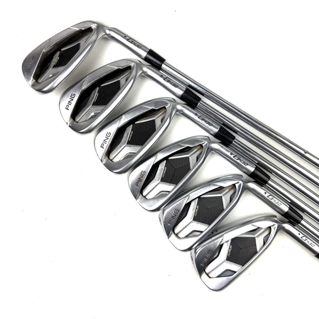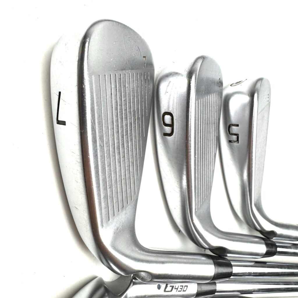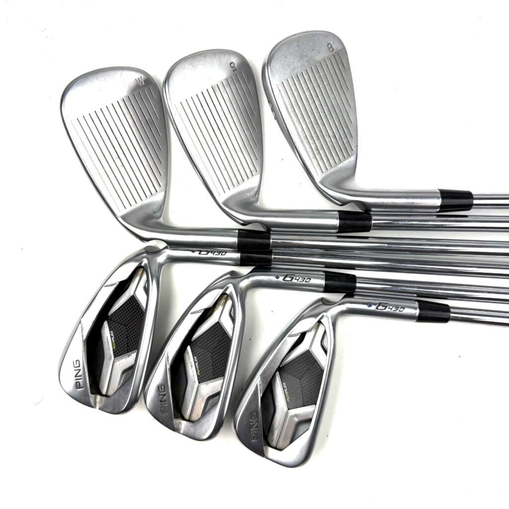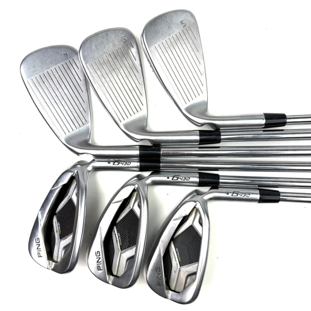 A key feature of the G430 irons is the “Tungsten Weighting” placed in the toe and heel, which increases the moment of inertia (MOI) for greater stability and forgiveness on off-center strikes. The irons also have a wider sole design that aids in turf interaction, making them easier to hit from various lies. With a clean, modern look, the Ping G430 irons are geared toward golfers who want to improve their game by gaining more distance and consistency while still enjoying a forgiving and easy-to-hit club.