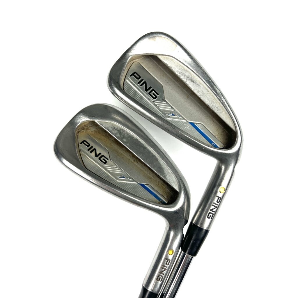 The Ping i Series E1 irons are designed to offer a blend of forgiveness, distance, and playability, with a focus on providing game-improvement features. Constructed from stainless steel, these irons feature a cavity-back design that enhances the moment of inertia (MOI), providing substantial forgiveness on off-center hits and consistent performance.