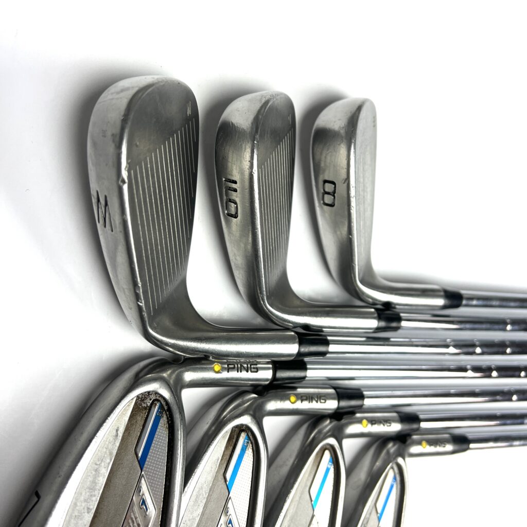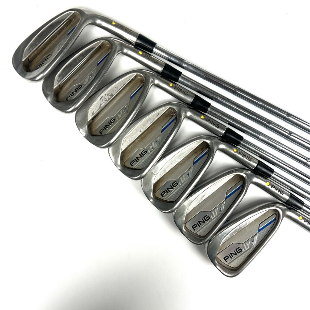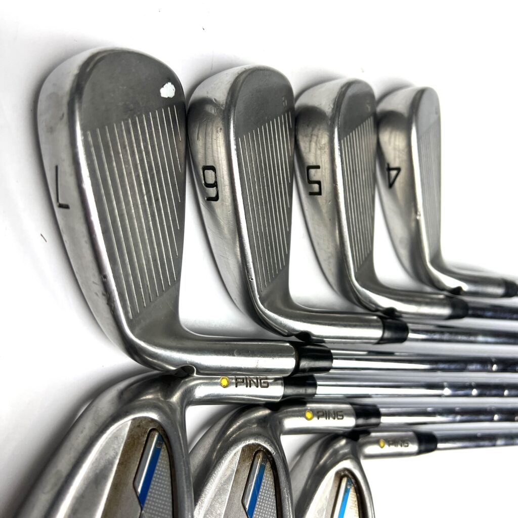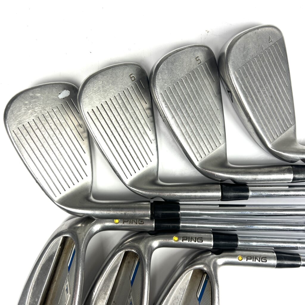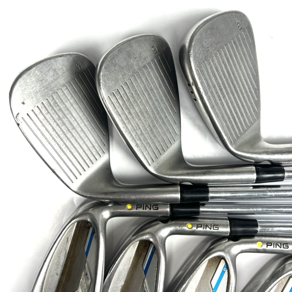 The i Series E1 irons are characterized by their oversized heads and a low, deep center of gravity (CG), which help promote higher ball flights and easier launches. The wide sole design aids in reducing turf interaction issues, preventing digging, and improving playability from various lies. The sleek, modern profile includes a thin top line and minimal offset, combining advanced technology with an attractive look. Additionally, the irons are engineered with Ping’s custom tuning technology to enhance the feel and sound at impact. Overall, the Ping i Series E1 irons deliver a high-performance option that balances distance, forgiveness, and user-friendly features, making them suitable for golfers looking to improve their game with forgiving and versatile irons.