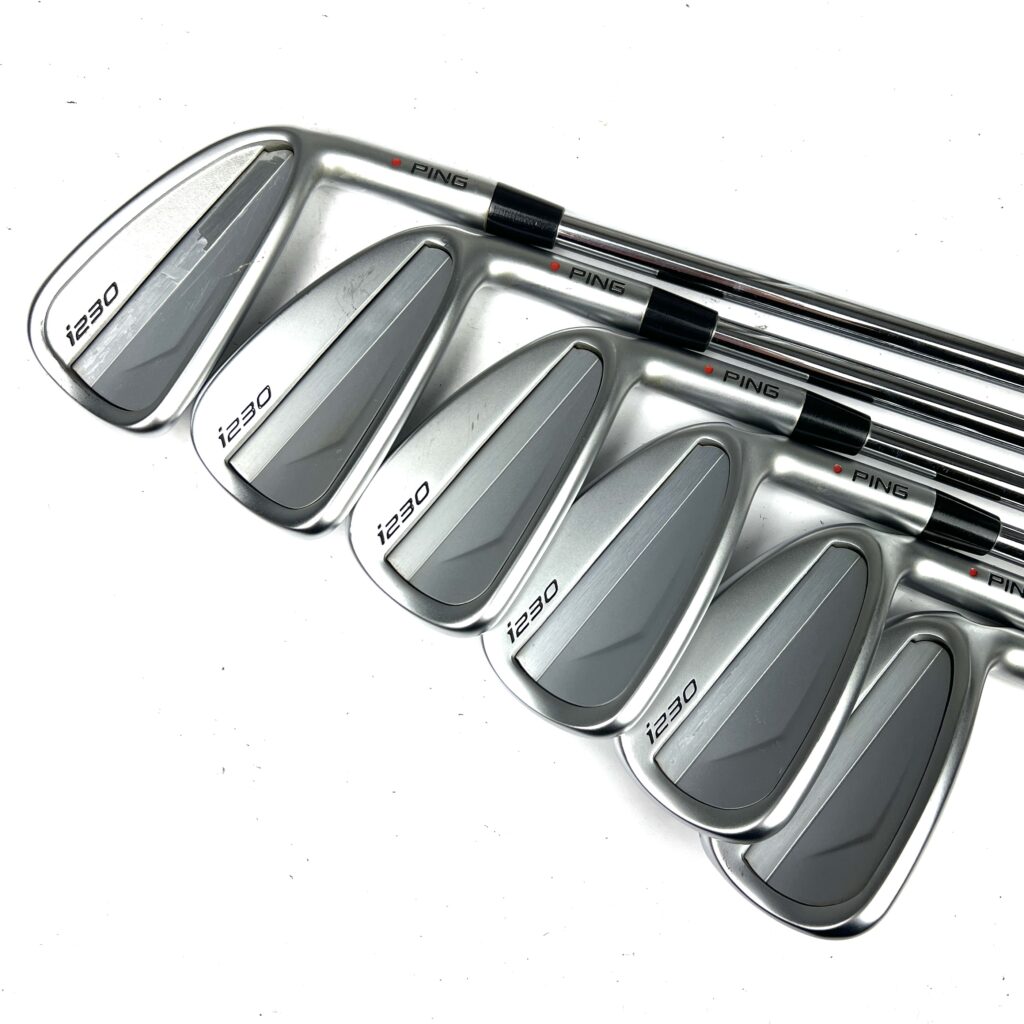A standout feature of the i230 irons is the perimeter weighting, which includes tungsten weights in the toe and heel, increasing the moment of inertia (MOI) for added forgiveness on off-center strikes. This design helps maintain stability and accuracy even when the ball isn’t struck perfectly. The i230 irons also have a clean, refined appearance with a thin topline and minimal offset, appealing to players who prefer a traditional look at address. Overall, the Ping i230 irons offer a blend of precision, feel, and forgiveness, making them a strong choice for golfers looking to enhance their control without sacrificing performance.