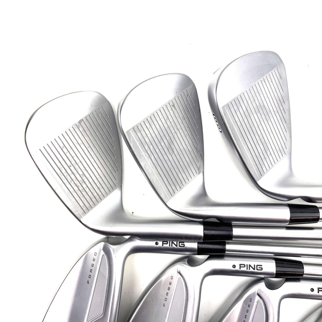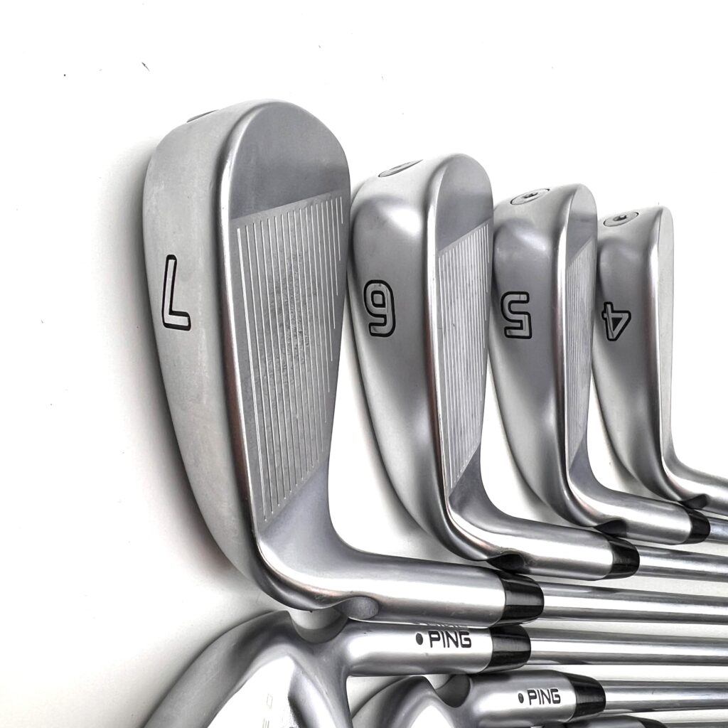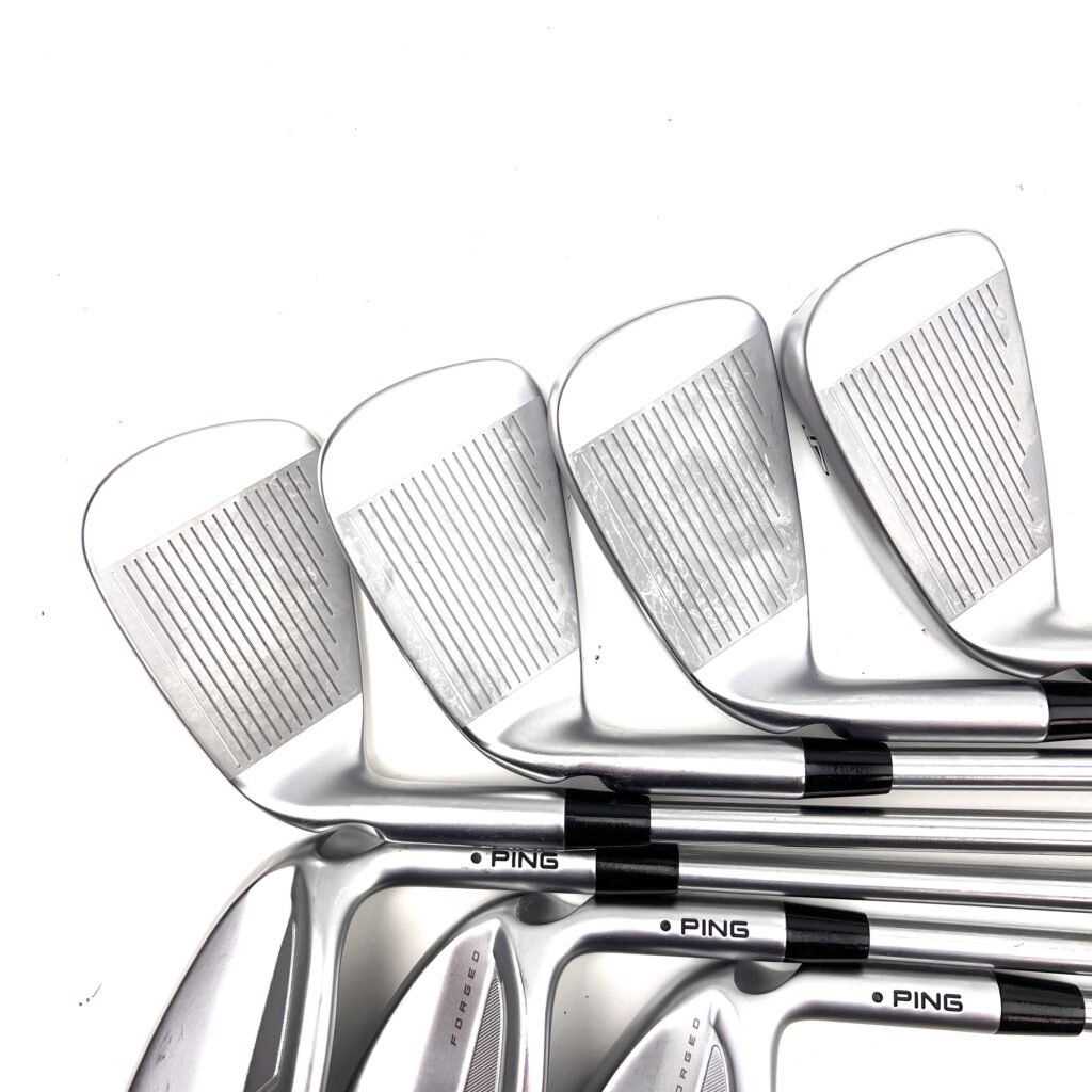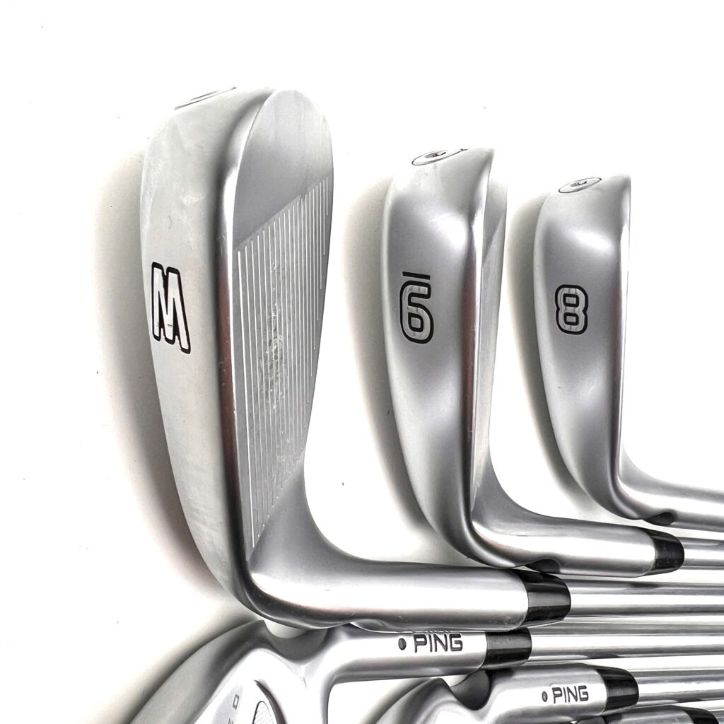 The Ping i525 irons are designed for golfers seeking a blend of distance, precision, and a soft feel. These irons feature a “Forged, Maraging Steel Face” paired with a stainless steel body, which enhances ball speed and distance while providing a solid feel at impact. The “MicroMax” grooves offer consistent spin and control across various lies, making these irons versatile on the course. With a sleek, compact design, the i525 irons appeal to players who prefer a traditional look without sacrificing modern performance.