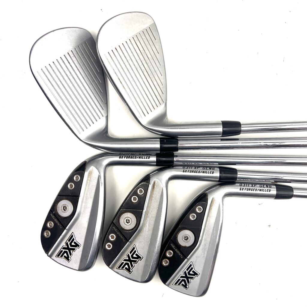 The PXG 0311 XP Gen 6 Irons are designed to provide maximum distance, forgiveness, and advanced performance for golfers seeking a high-quality, game-enhancing iron set. These irons feature a multi-material construction that combines a forged 8620 carbon steel face with a high-strength, stainless steel body. This design ensures a soft feel and excellent feedback while maximizing durability and performance.