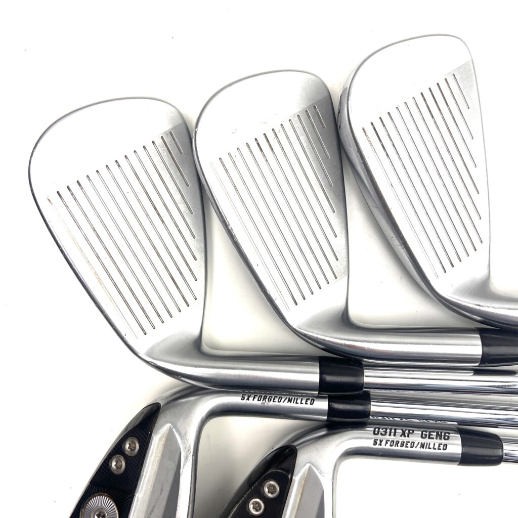 The 0311 XP Gen 6 Irons incorporate PXG’s latest technological advancements, including “Tungsten Weighting” to strategically position weight around the perimeter of the clubhead. This improves stability and increases the Moment of Inertia (MOI), enhancing forgiveness on off-center hits and promoting higher ball launches. The “Thick Face Technology” and “Variable Face Thickness” further optimize ball speed and distance across the face, ensuring consistent performance.