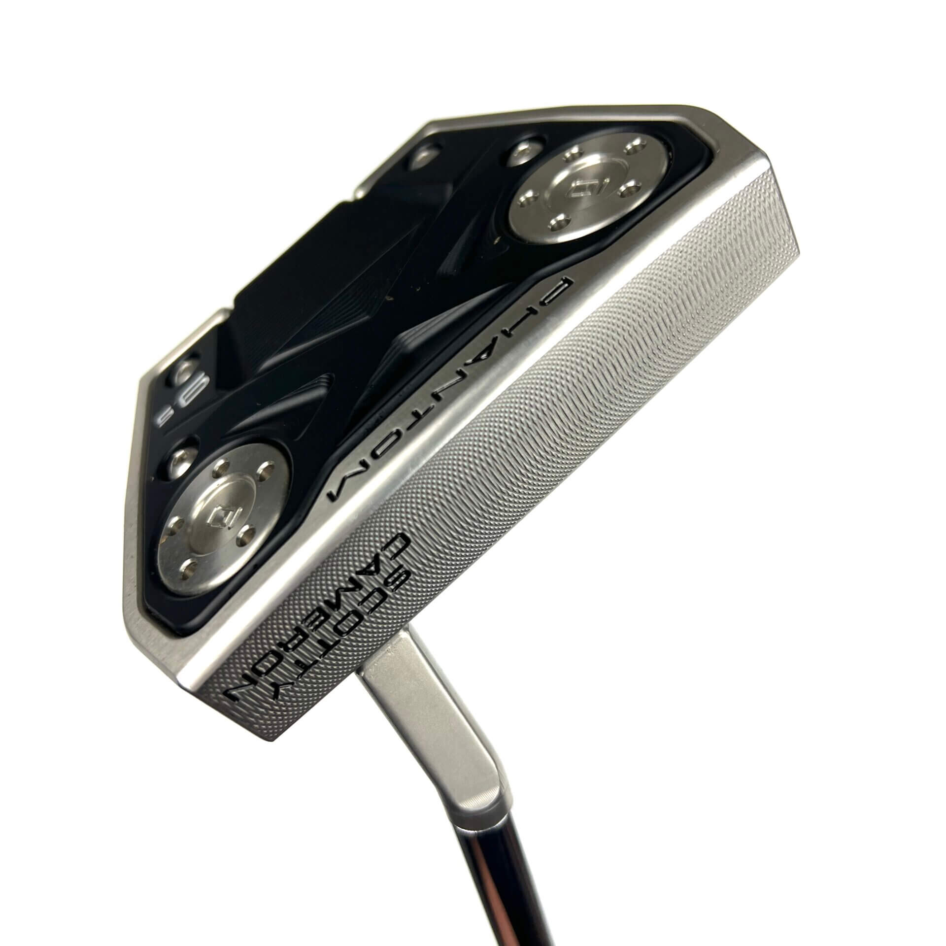 Designed with a toe flow-promoting small slant or “jet neck,” the Phantom X 9.5 offers an additional configuration nearly identical to its twin, the Phantom X 9. Exact in every way, save for its toe flow-promoting neck design, this precision milled compact mallet delivers balance and feel with its solid stainless steel face and wings integrated with a rounded 6061 aluminum flange-sole component. Scotty calls this unique profile “connected” at address, as its simple flange alignment connects the putter wings when viewed at address.