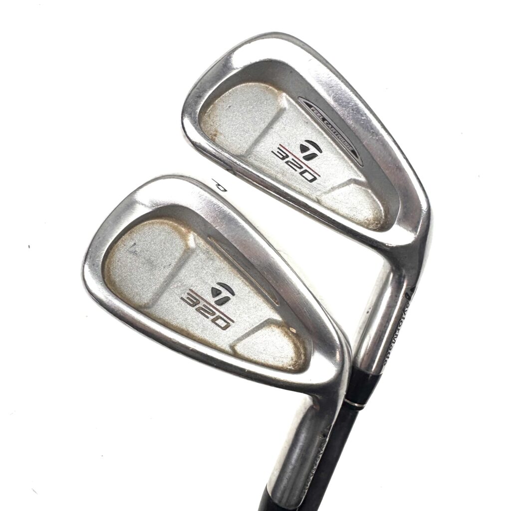 The TaylorMade 320 irons were popular cavity-back irons from the early 2000s, known as an easy-to-hit, forgiving set within TaylorMade’s 300 series, offering a blend of distance and control with a moderate topline and slight offset for confidence at address. Key features included stainless steel construction, a vibration-dampening “Feel Cartridge” for consistent feel, and optimized center of gravity (CG) – lower in long irons for launch and higher in short irons to prevent ballooning, making them great for a wide range of golfers.