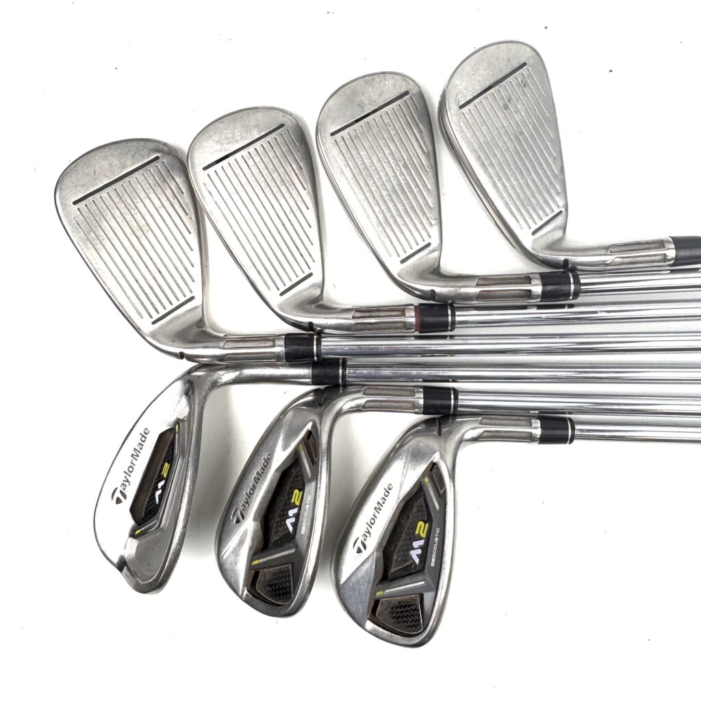 One of the key features of the M2 2017 irons is the “Geocoustic” technology, which combines advanced shaping with sound management techniques to improve both the feel and sound at impact. This design includes a thinner topline and a fluted hosel, which helps lower the center of gravity, promoting a higher launch angle and increased ball speed. The irons also feature an expanded “Speed Pocket” that enhances face flexibility, resulting in more distance, especially on shots struck low on the face.