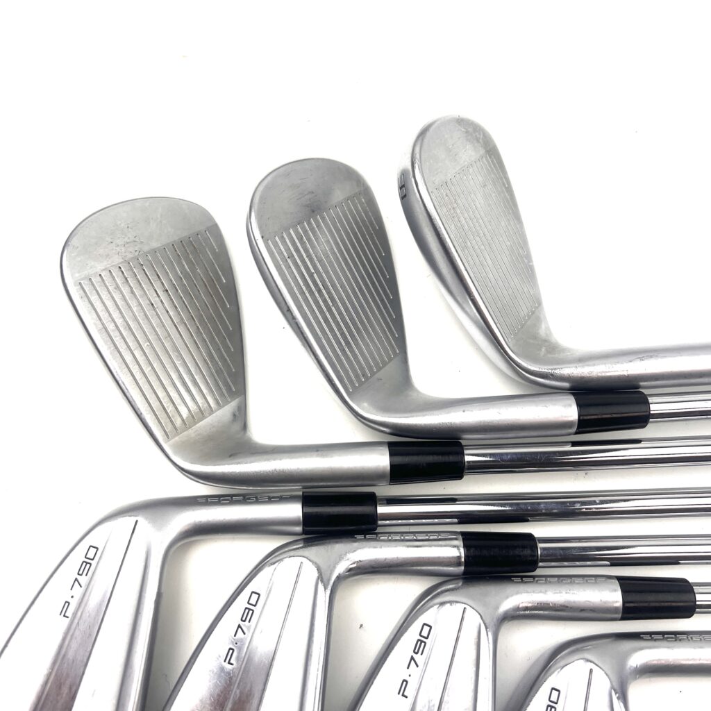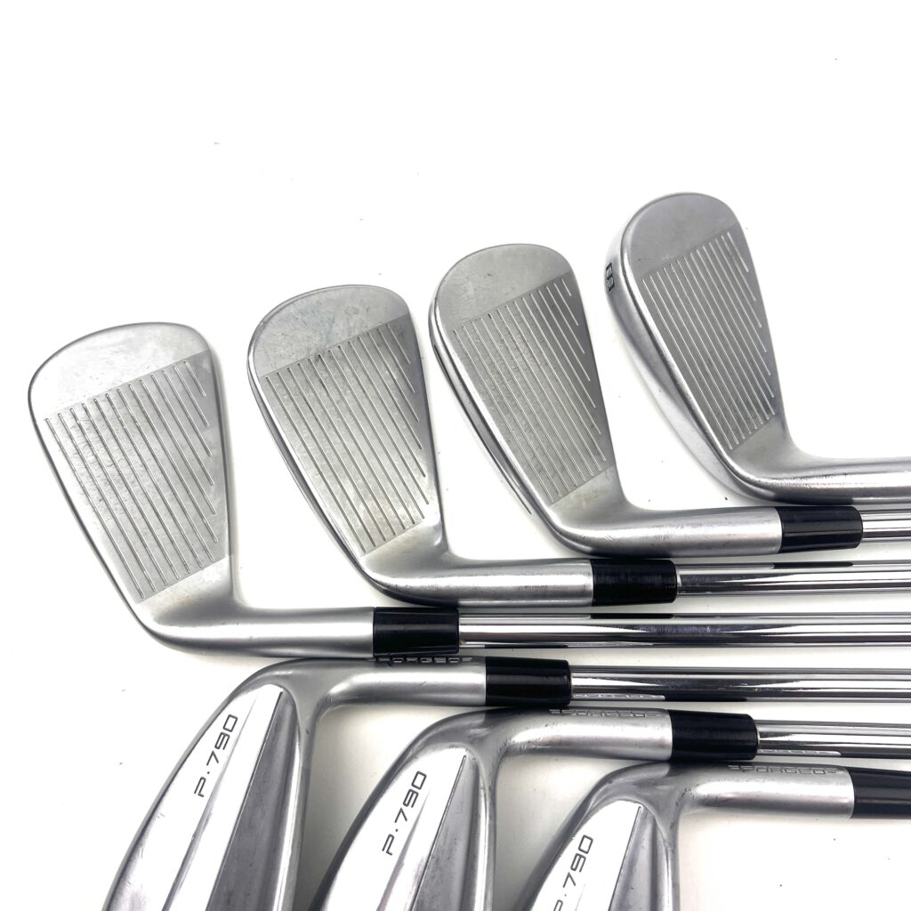 The irons also feature a forged 4140 steel face with “Inverted Cone Technology” (ICT), which expands the sweet spot and maintains ball speed on off-center hits, ensuring consistent performance across the face. The use of tungsten weighting in the longer irons further enhances stability and helps produce a higher, more consistent ball flight. The P790 (2023) irons maintain their clean, compact look, with a thin topline and minimal offset, appealing to golfers who prefer a traditional aesthetic but still want the benefits of modern performance-enhancing technologies.