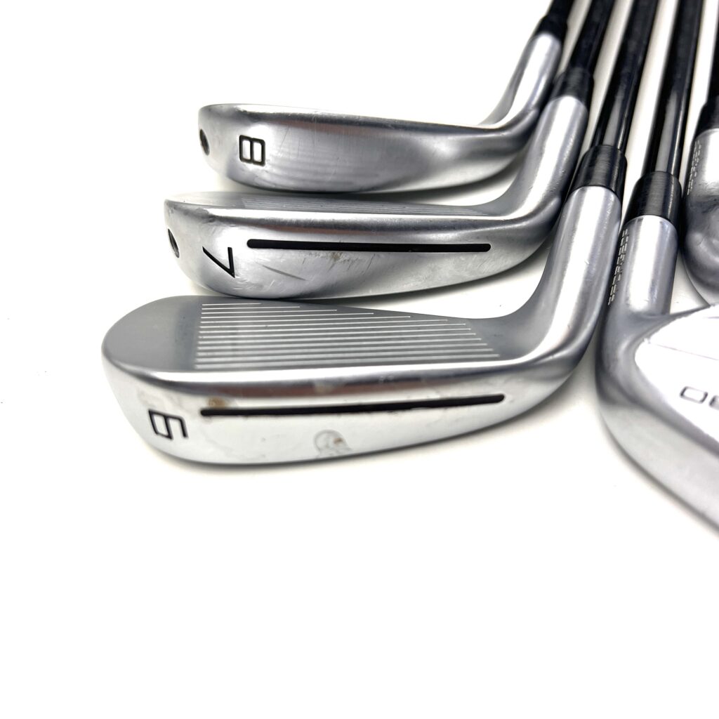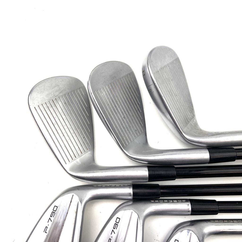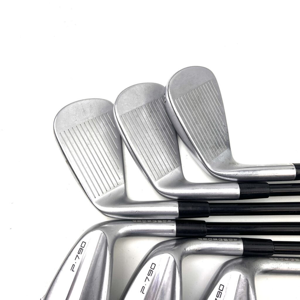 The irons also feature a forged 4140 steel face with “Inverted Cone Technology” (ICT), which expands the sweet spot and maintains ball speed on off-center hits, ensuring consistent performance across the face. The use of tungsten weighting in the longer irons further enhances stability and helps produce a higher, more consistent ball flight. The P790 (2023) irons maintain their clean, compact look, with a thin topline and minimal offset, appealing to golfers who prefer a traditional aesthetic but still want the benefits of modern performance-enhancing technologies.
