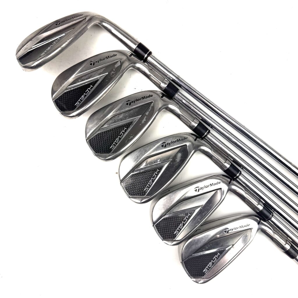 The Stealth irons are designed with a low center of gravity, which promotes a higher launch and more forgiving ball flight. The combination of a wider sole, perimeter weighting, and a slightly larger clubhead provides extra forgiveness, making these irons easy to hit from a variety of lies. The irons also feature a modern, sleek look with a clean aesthetic that appeals to golfers who value both performance and style. Overall, the TaylorMade Stealth irons are ideal for golfers seeking to improve their distance, accuracy, and consistency while enjoying the benefits of a forgiving, easy-to-hit club.