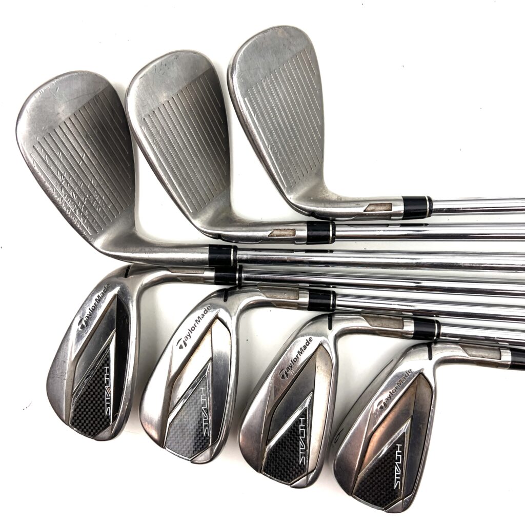 The Stealth irons are designed with a low center of gravity, which promotes a higher launch and more forgiving ball flight. The combination of a wider sole, perimeter weighting, and a slightly larger clubhead provides extra forgiveness, making these irons easy to hit from a variety of lies. The irons also feature a modern, sleek look with a clean aesthetic that appeals to golfers who value both performance and style. Overall, the TaylorMade Stealth irons are ideal for golfers seeking to improve their distance, accuracy, and consistency while enjoying the benefits of a forgiving, easy-to-hit club.