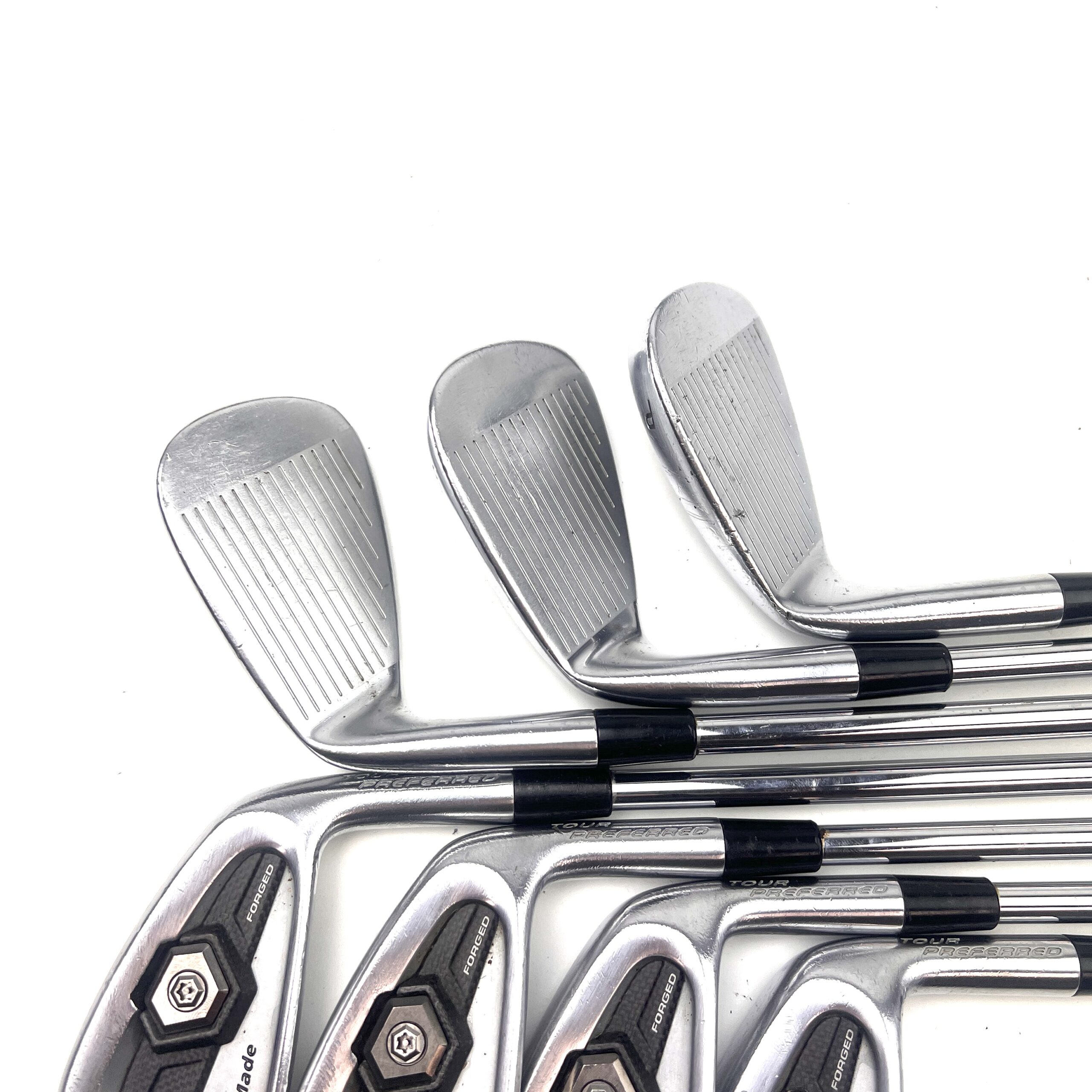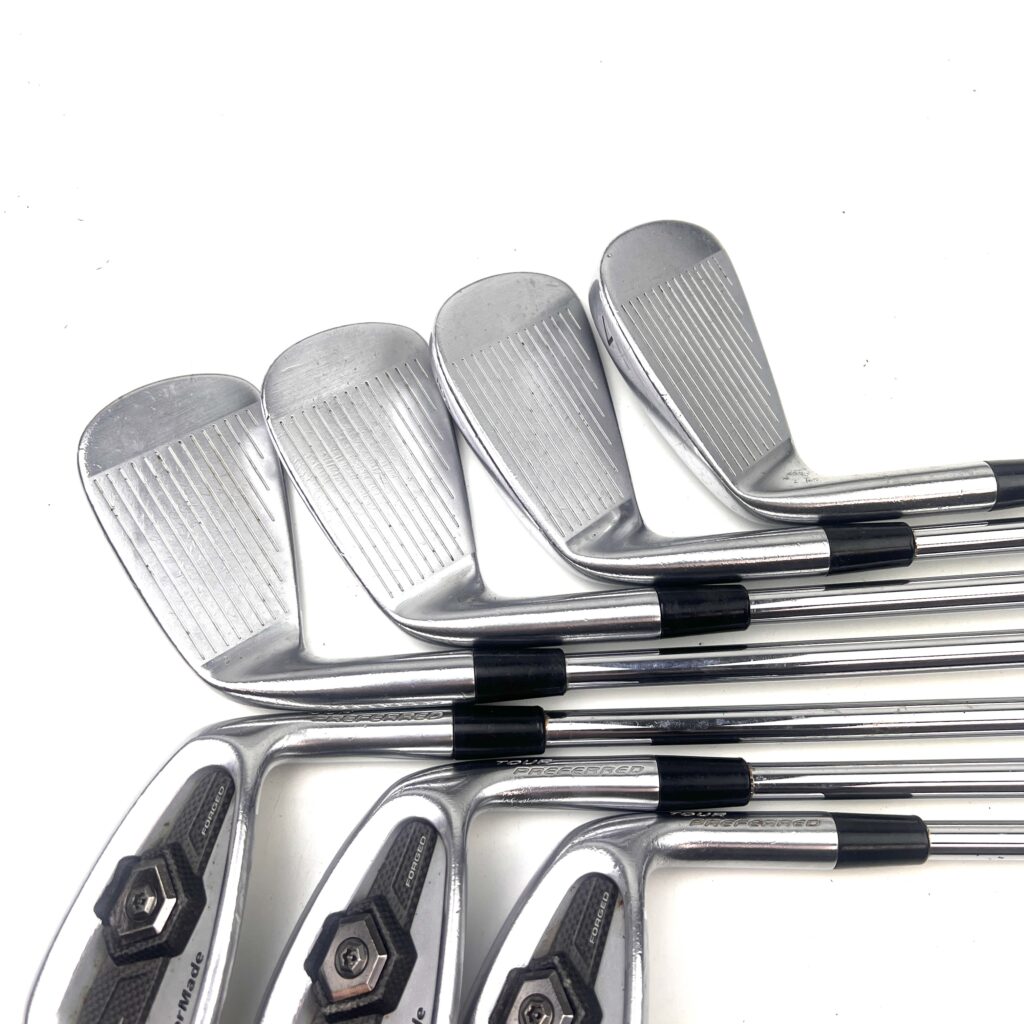 The 2011 Tour Preferred MC irons are forged from soft carbon steel, which provides a soft, responsive feel at impact, highly valued by better players. The irons feature a compact head with a thin topline and minimal offset, offering a classic, clean look at address that appeals to golfers who prefer a traditional aesthetic. TaylorMade also incorporated their “Precision Weighting Port” in these irons, which ensures consistent swing weights throughout the set and helps optimize the center of gravity for better launch conditions.