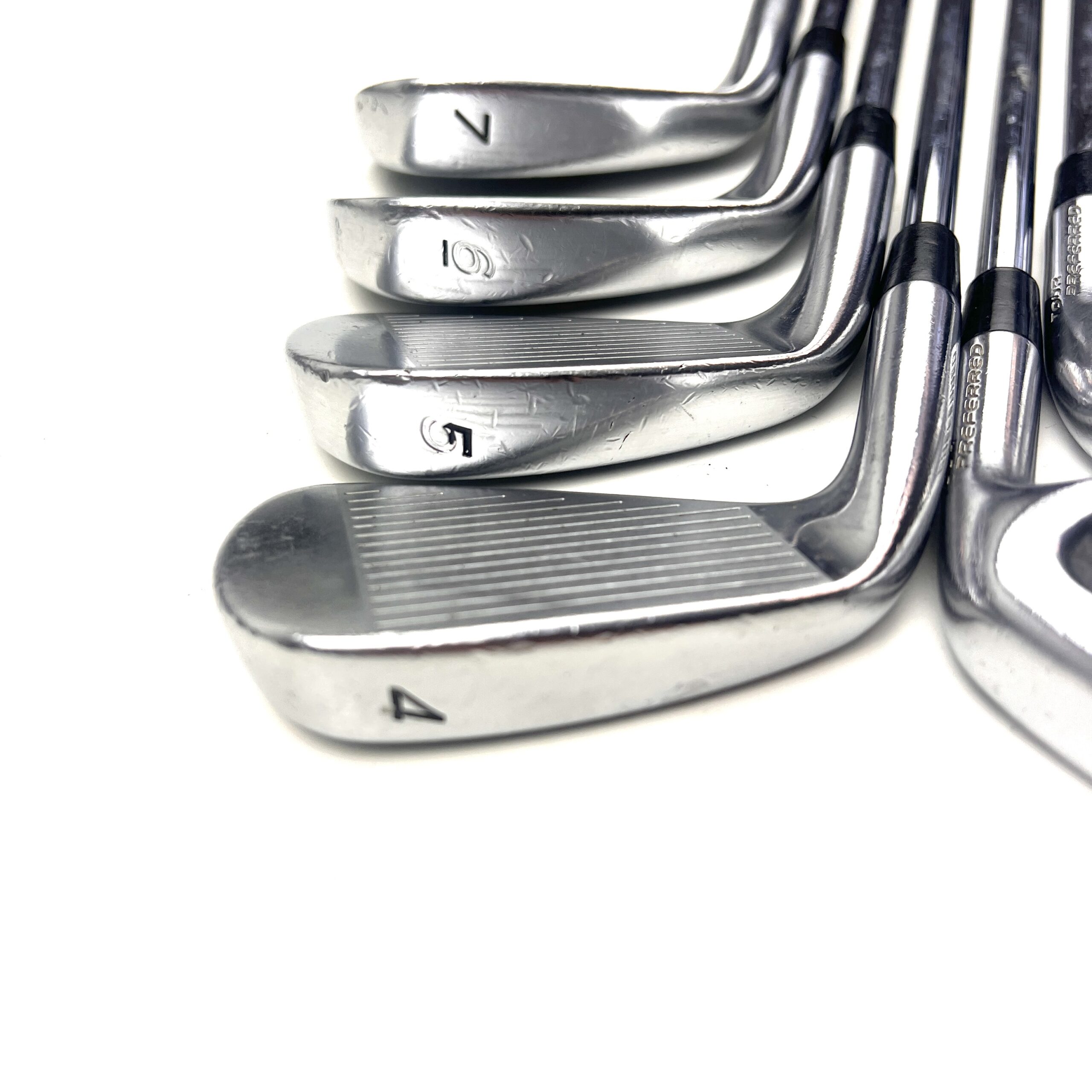 These shafts are still in playable condition but ares showing signs of heavy use. Steel shafts could have heavy rust spots or pitting to the shaft. Graphite shafts could show some heavy bag wear. All purely cosmetic, there will be no actual damage.