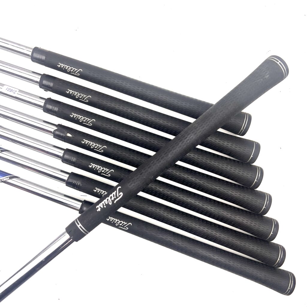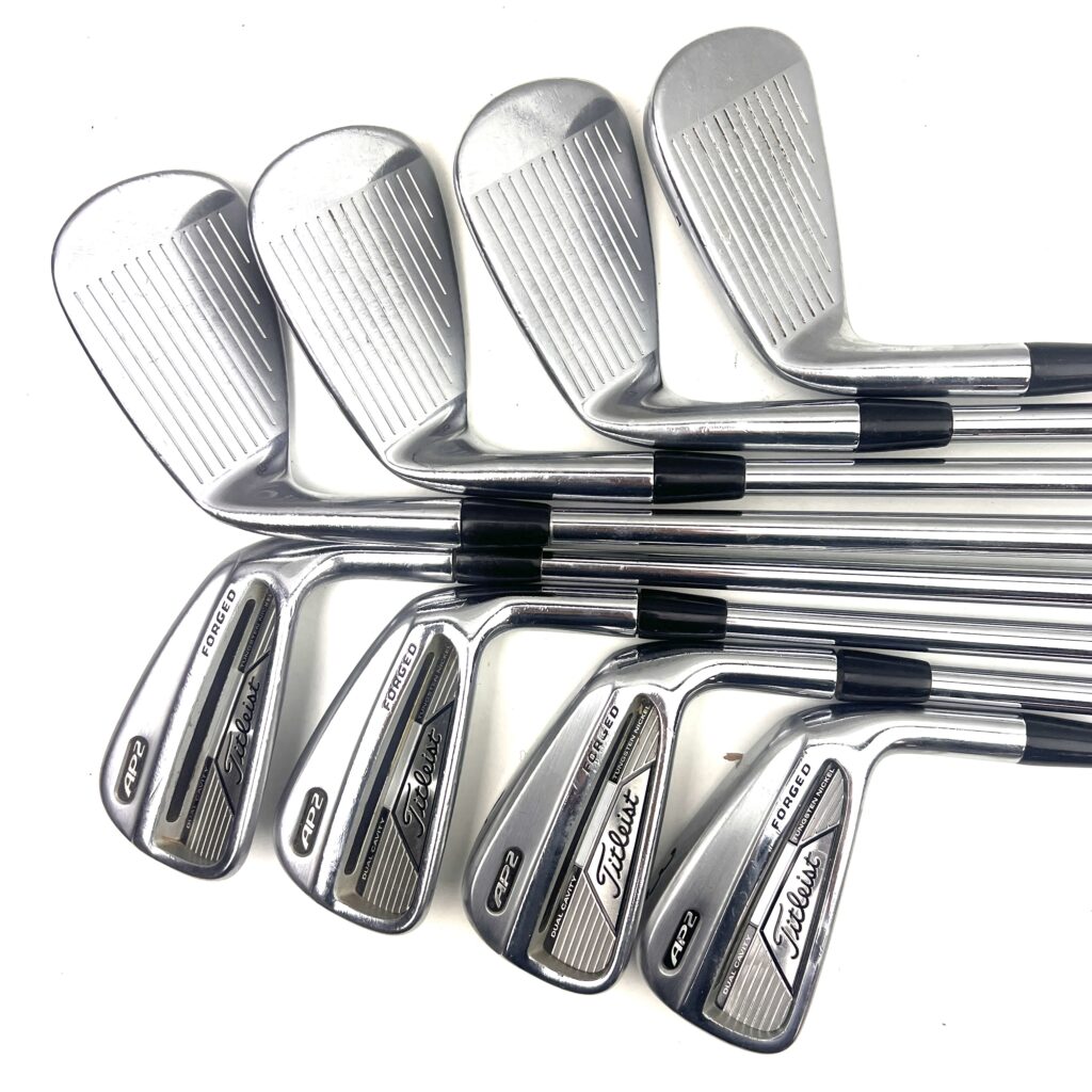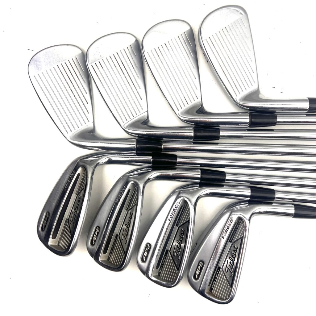 These irons are designed with a compact head, thin topline, and minimal offset, giving them a traditional, tour-inspired look that appeals to better players. Despite their player-friendly aesthetics, the AP2 irons offer more forgiveness than traditional blade irons, thanks to their cavity back design and perimeter weighting. This makes them ideal for golfers who want the workability and control of a players’ iron but with the added confidence that comes from a bit of extra forgiveness. Overall, the Titleist AP2 irons are a top choice for golfers who seek a blend of precision, feel, and playability in their iron play.