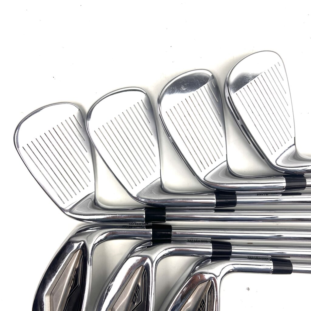The Wilson Staff D9 irons are designed for golfers seeking a blend of distance, forgiveness, and playability, making them an excellent choice for mid-to-high handicap players. These irons are part of Wilson’s D (Distance) series and incorporate advanced technologies to help golfers achieve longer, straighter shots with greater ease. A standout feature is the “Power Hole 2.0” technology, where strategically placed urethane-filled holes along the sole allow the face to flex more at impact, increasing ball speed and distance, even on off-center hits. The variable thickness face design further enhances ball speed and provides consistent performance across the entire clubface.